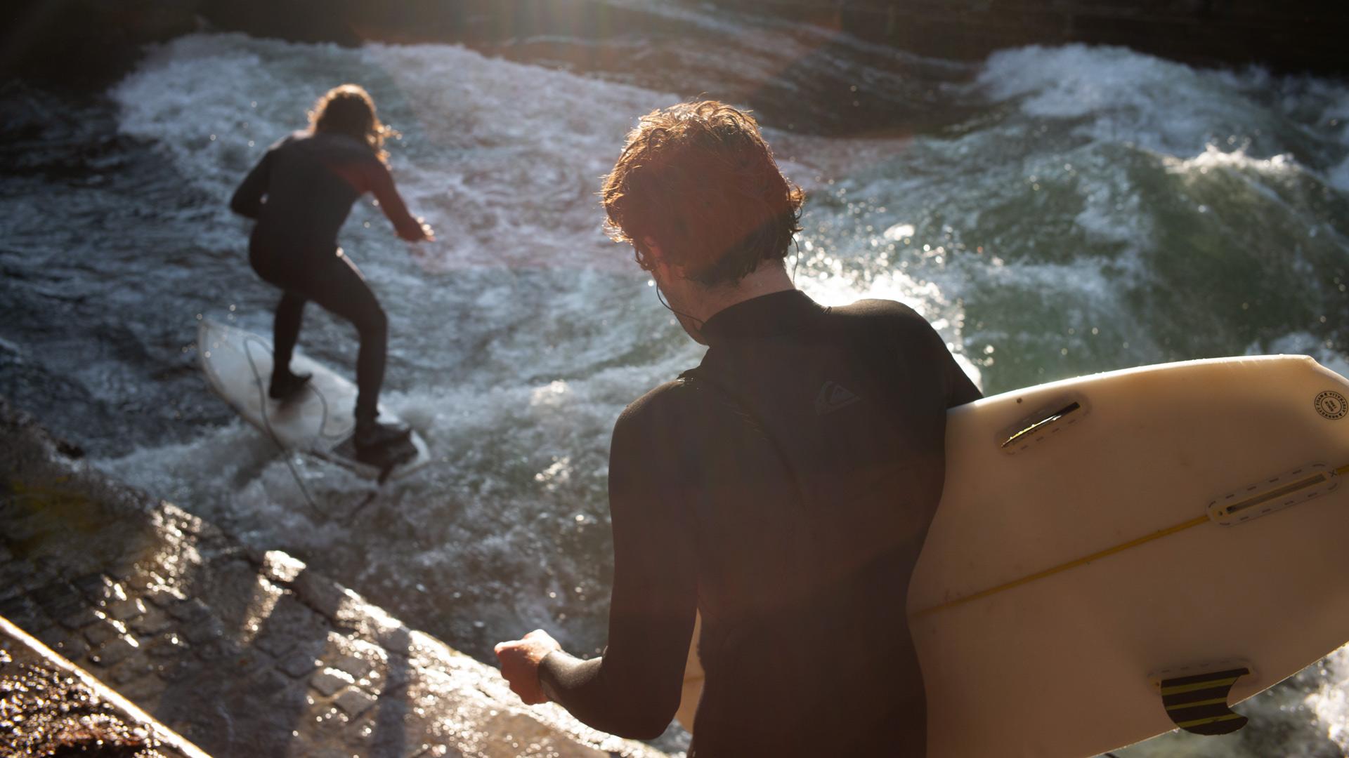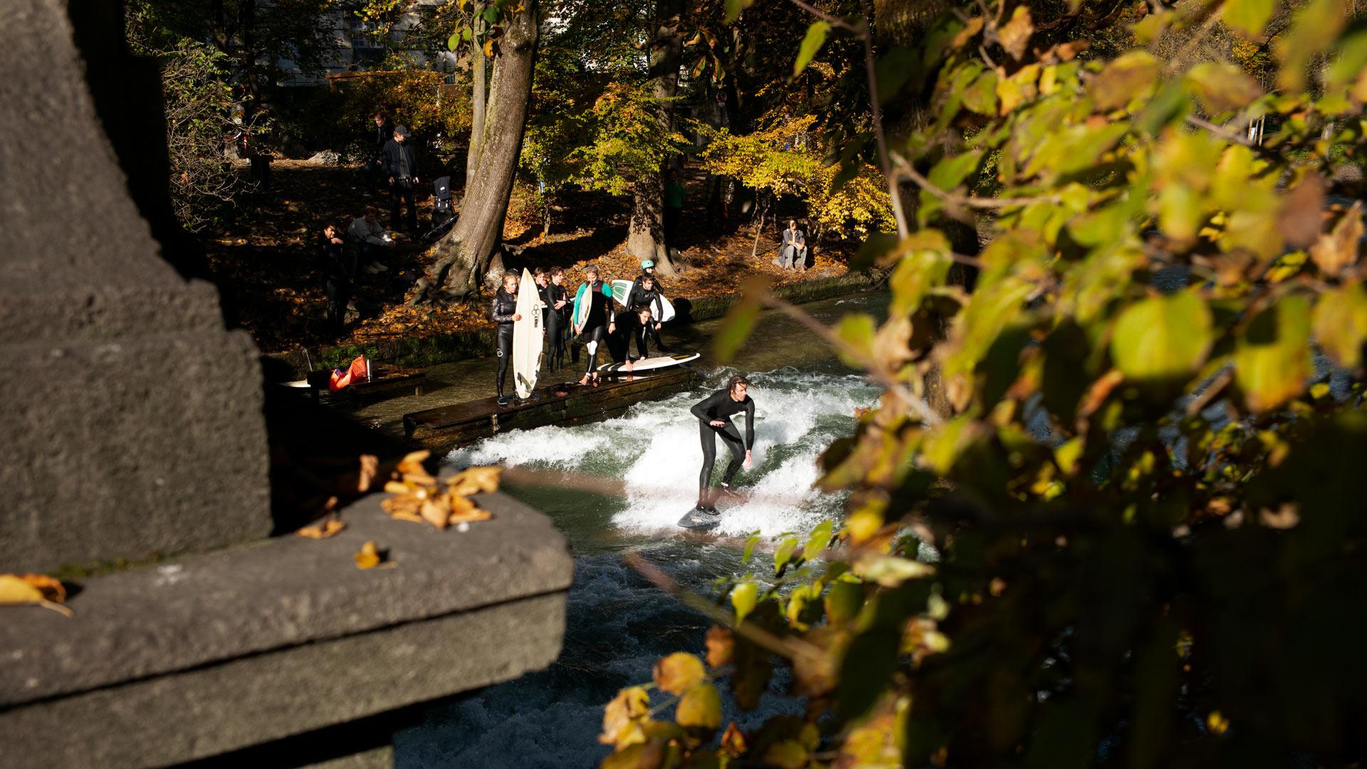 Today, the wave is still dominated by mostly local surfers. But also kayakers, kneeboarders and bodyboarders are frequently seen at the Eisbachwelle. As in all other surf spots around the world, there is a large local engagement in Munich. This community has welcomed our team with great enthusiasm, sharing the same passion for surfing in a different environment.