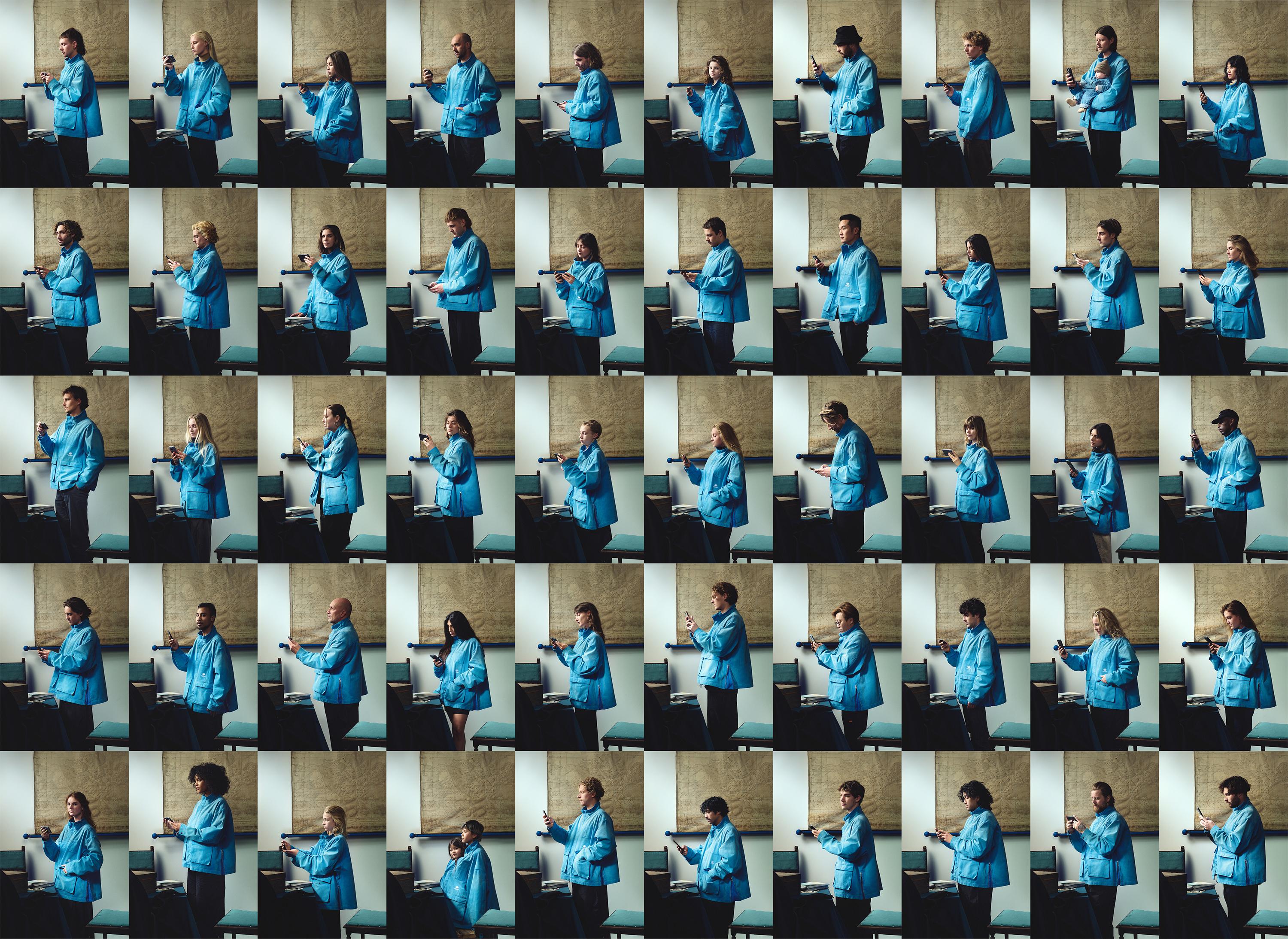 The first and most conceptual is the Blue jacket. We were thinking about placing Vermeer in current times. By translating the dress/jacket of the “woman reading a letter” to a workwear jacket we would wear. An oversized A-shape jacket with the blue fades and shades of the woman reading a letter jacket in a heavy cotton canvas.