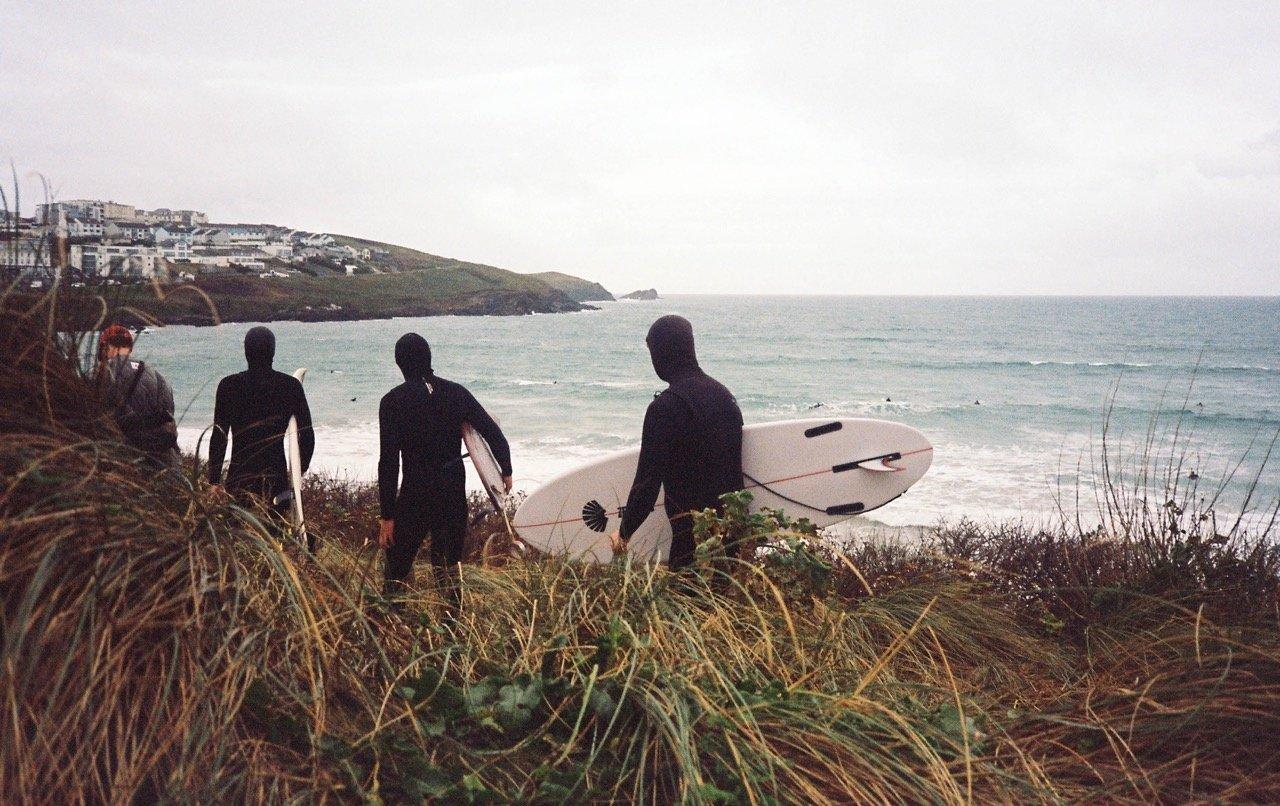 The guys of our surf team wearing our new collection embody stereotypical tourist vibes, while concurring the cold waters of Europe; such as Cornwall.