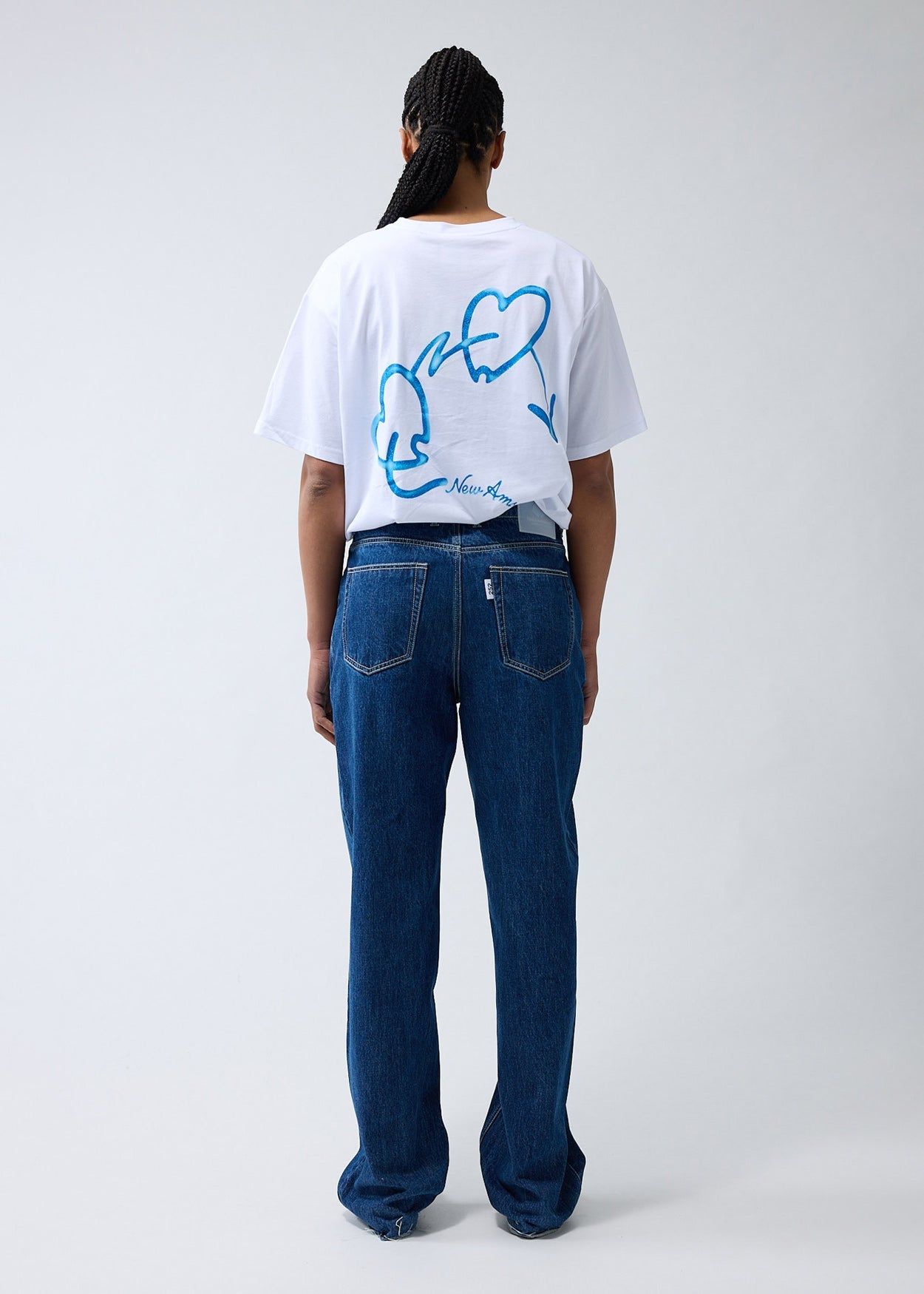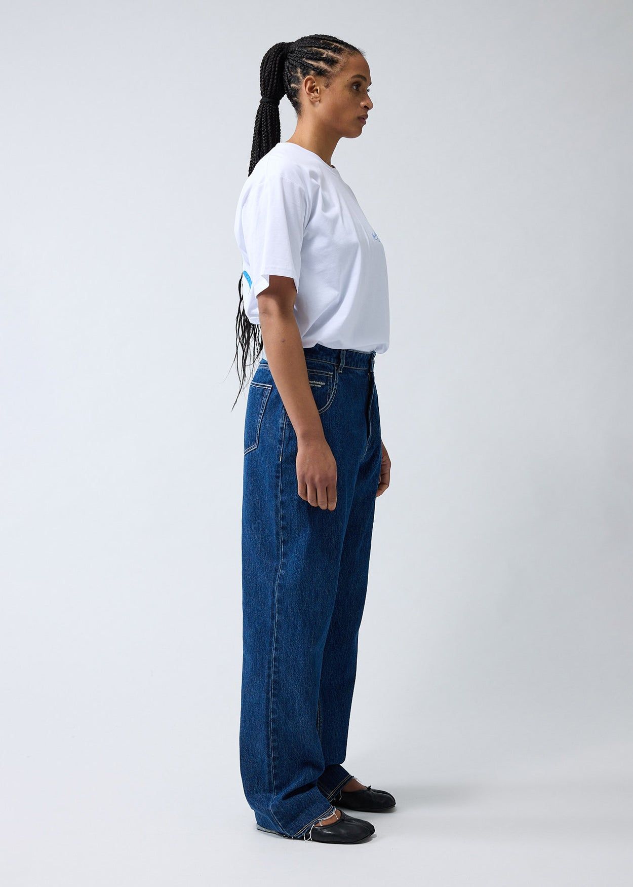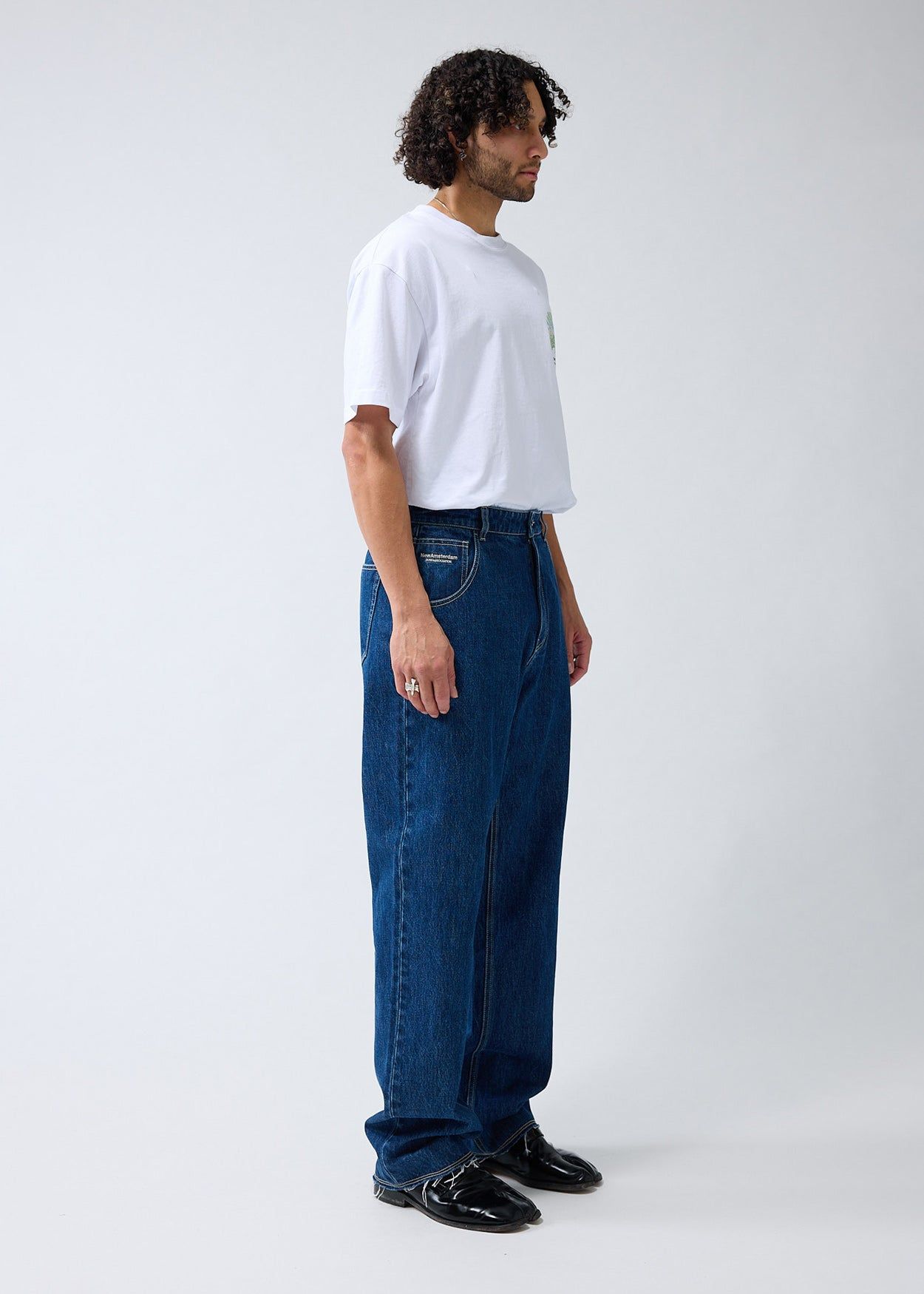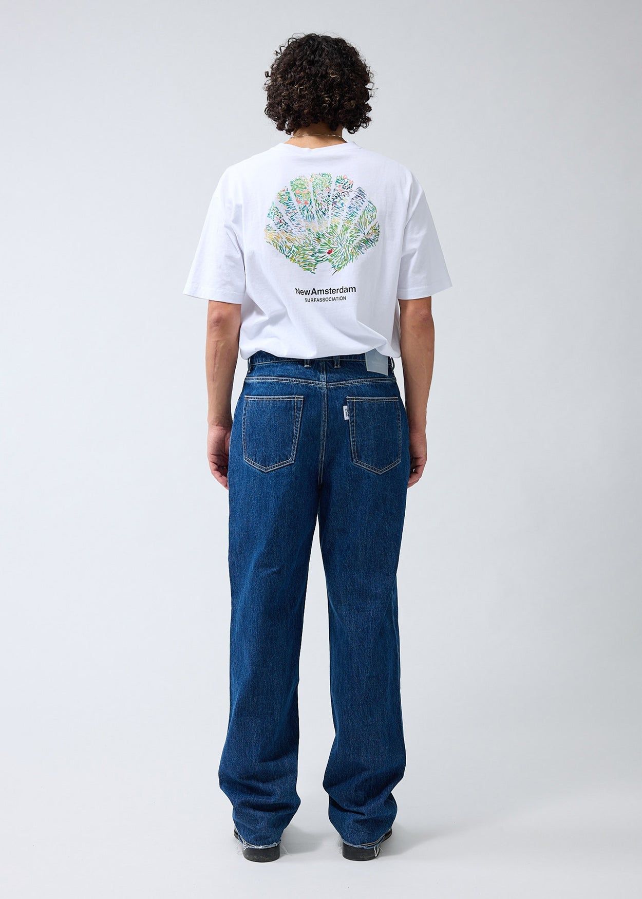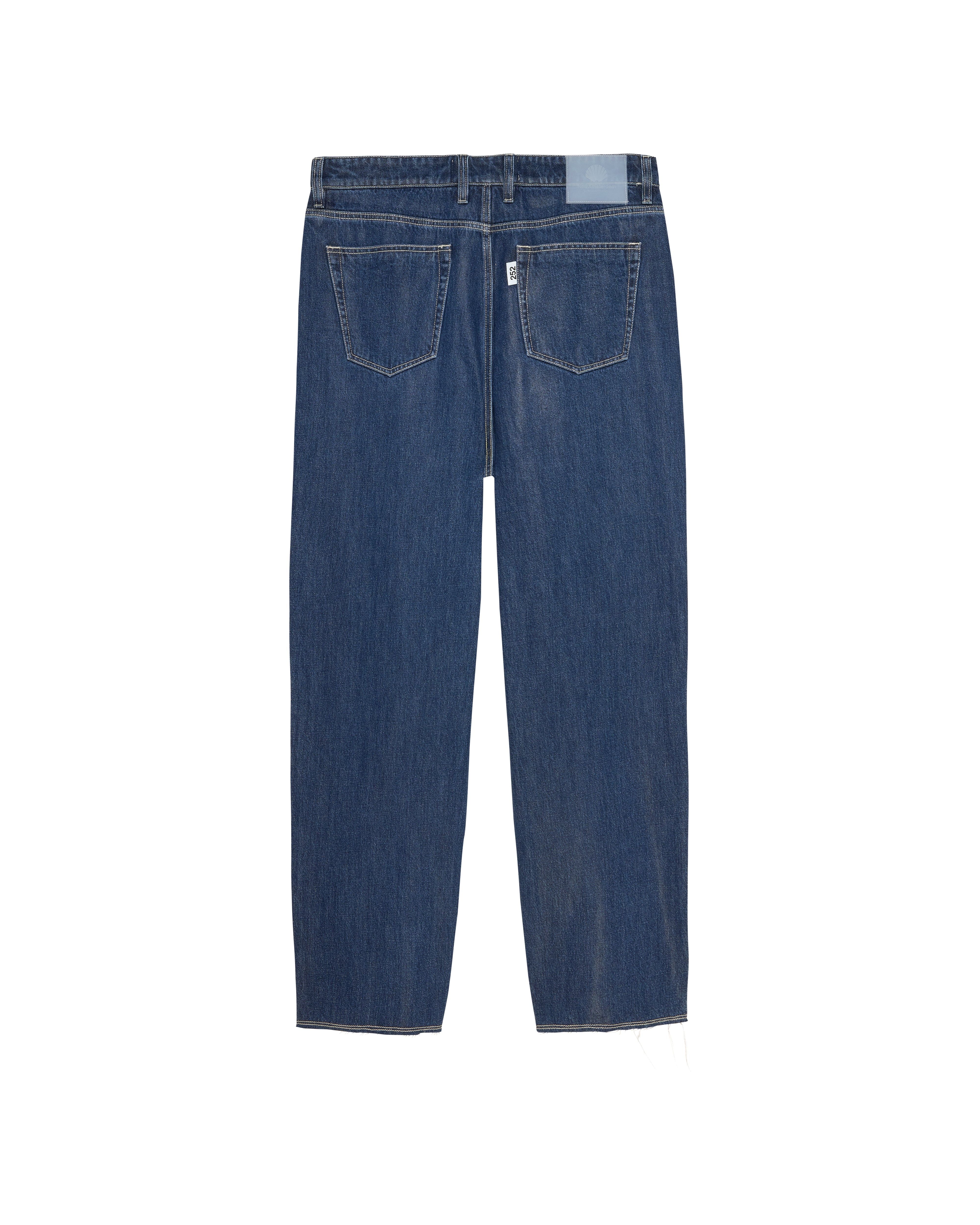 40% offLow stockDenim trouser cut to a relaxed fit with a mid waist and a straight leg. The garment has a fixed waistband and is available in two lenghts. Detailed with a Metal branded button, raw edge bottom hem and New Amsterdam name embroidery above the left pocket. These pants are made out of a cotton denim.