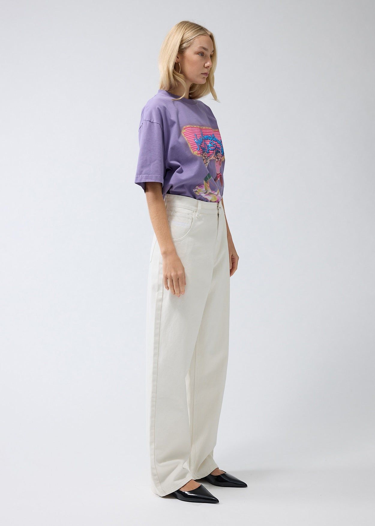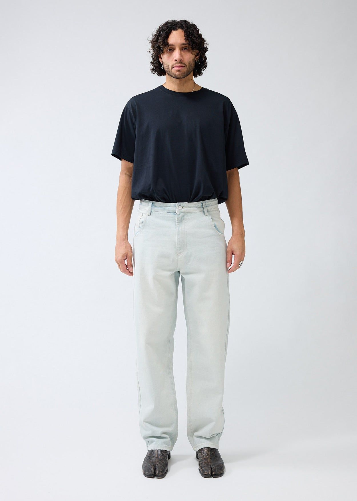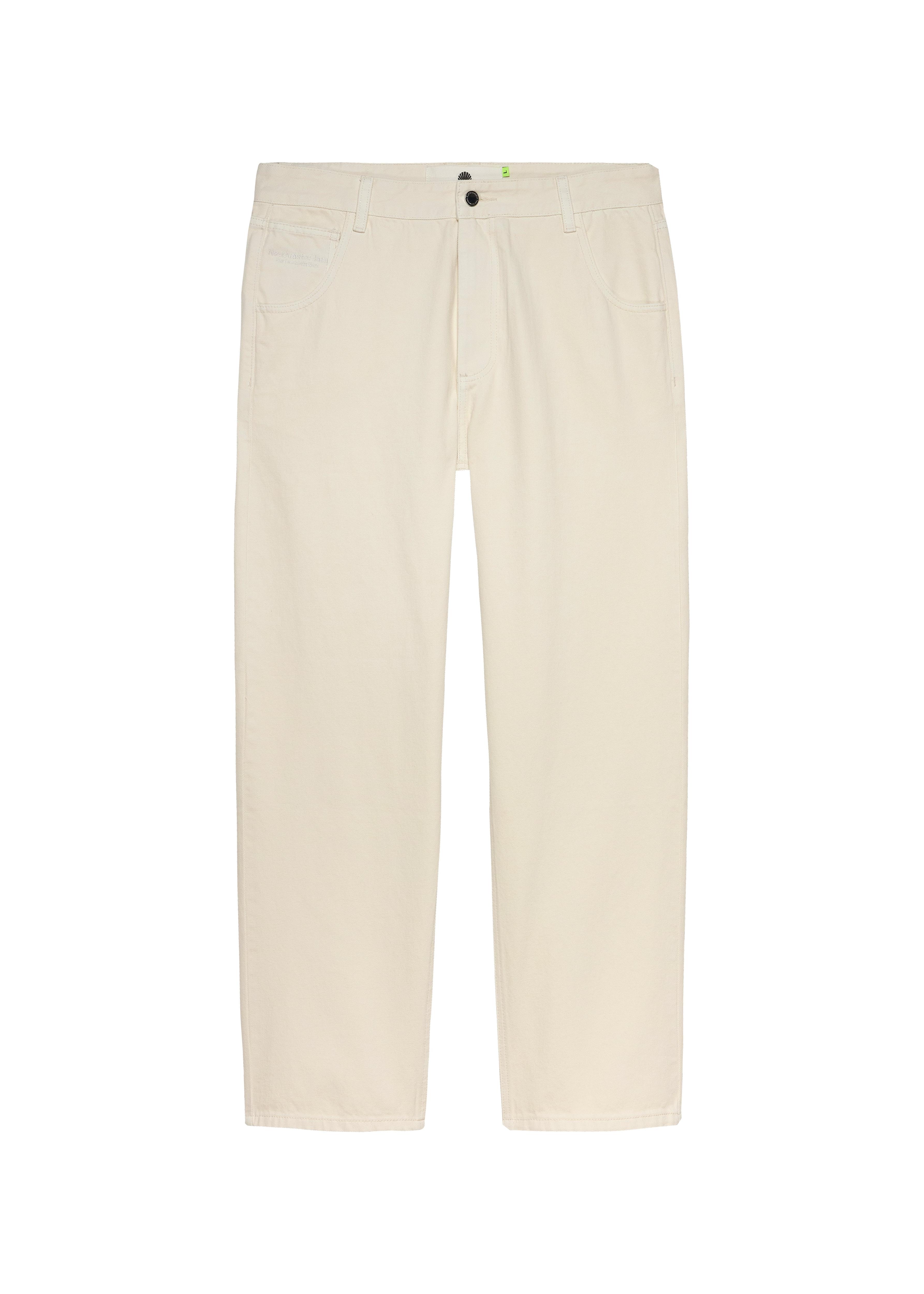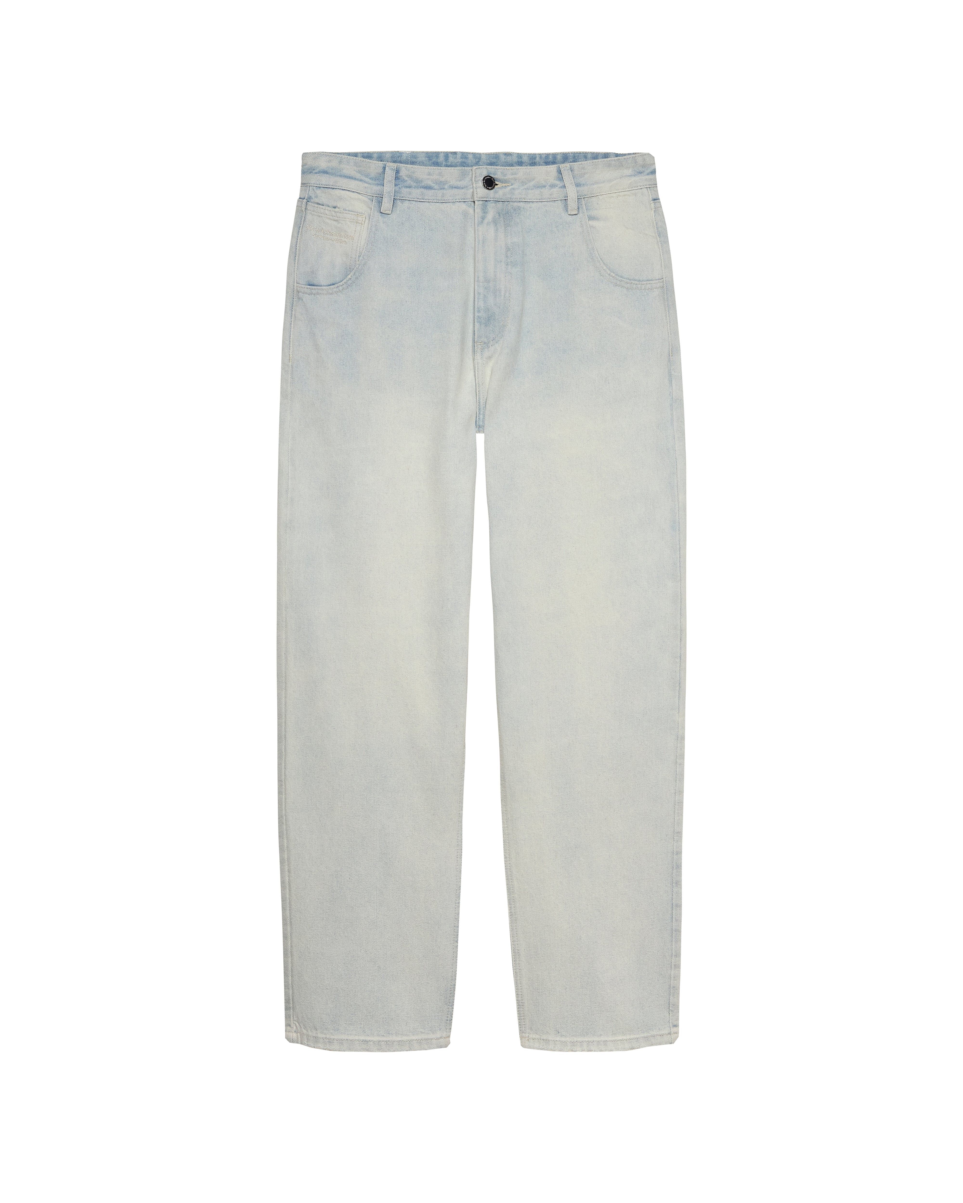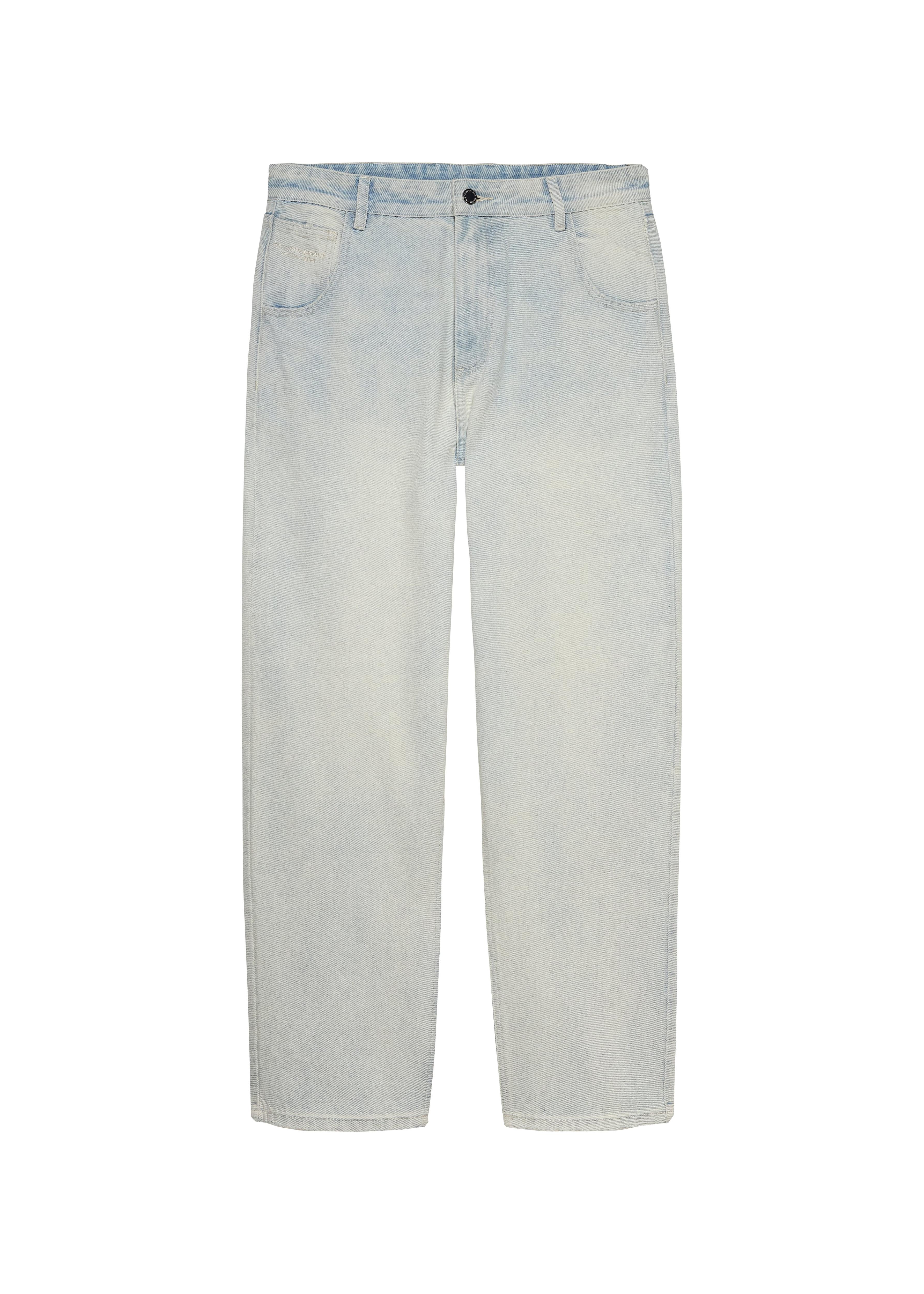 Out of stockDenim trouser cut to a relaxed fit with a mid waist and a straight leg. The garment has a fixed waistband and is available in two lenghts. Detailed with a Metal branded button, and New Amsterdam name embroidery above the left pocket. These pants are made out of a cotton denim.