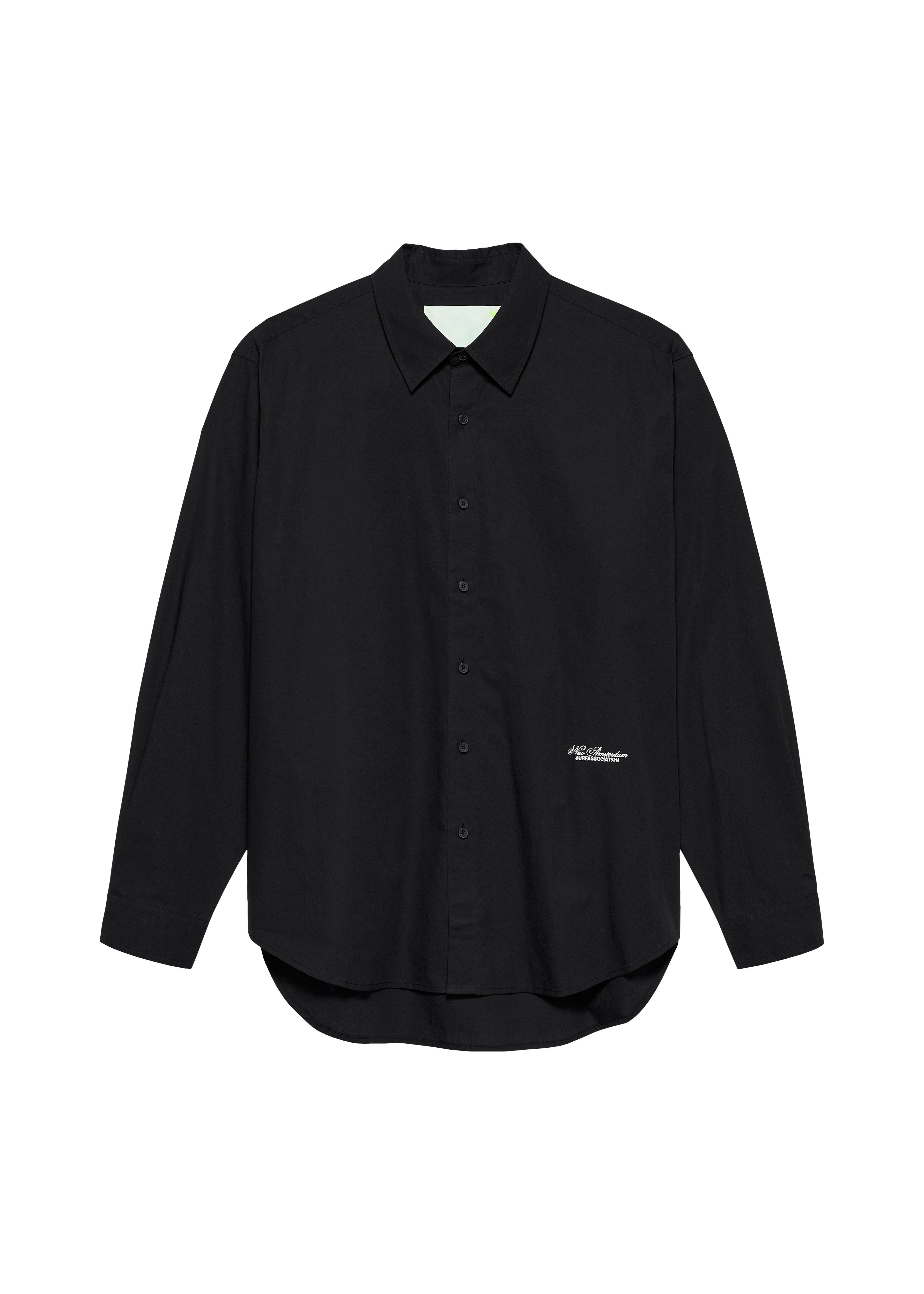 Out of stockButton-up shirt crafted from lightweight cotton poplin in white, with a small contrast New Amsterdam text logo embroidered on the front. Cut for a regular fit with a hip-length silhouette.
