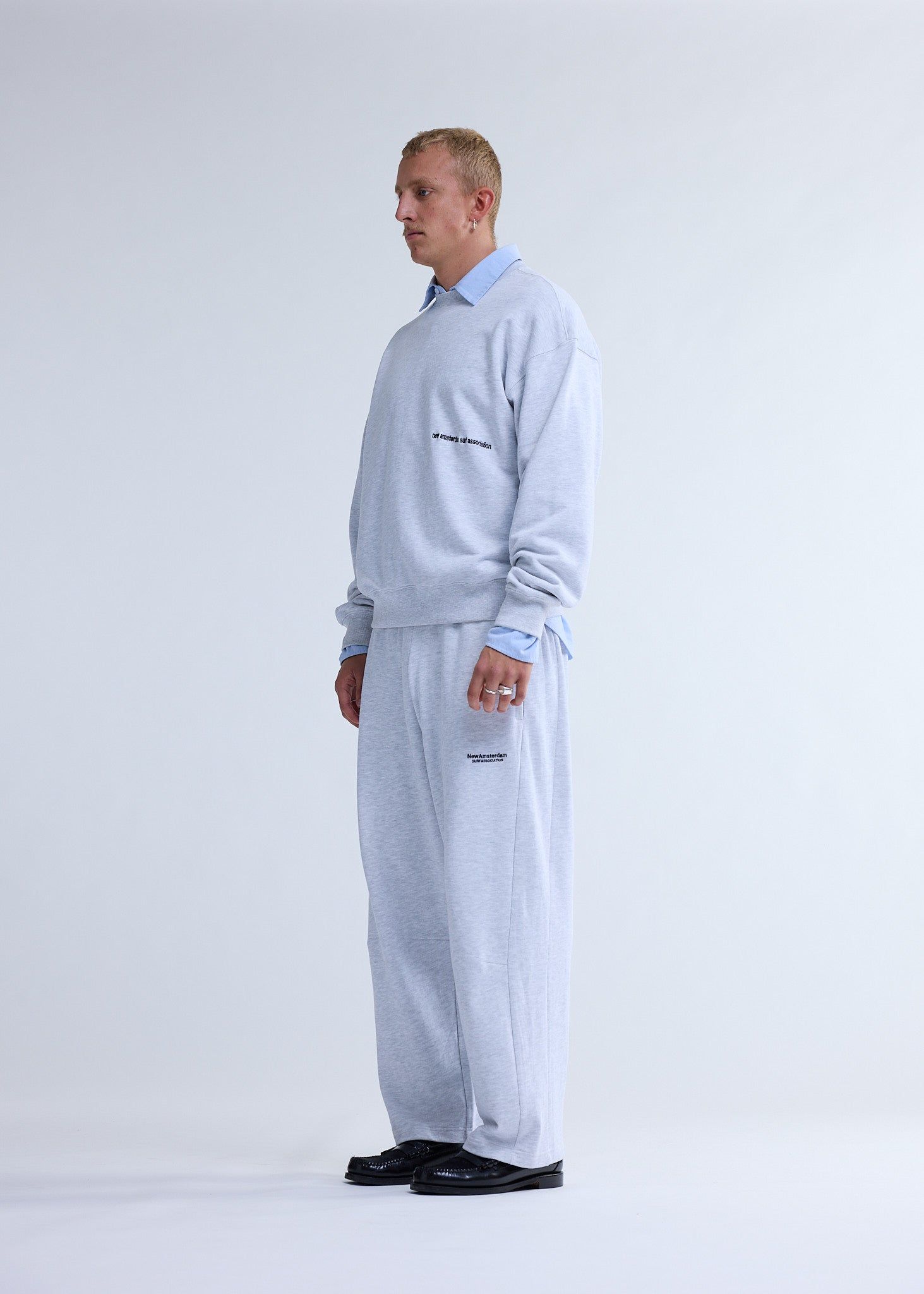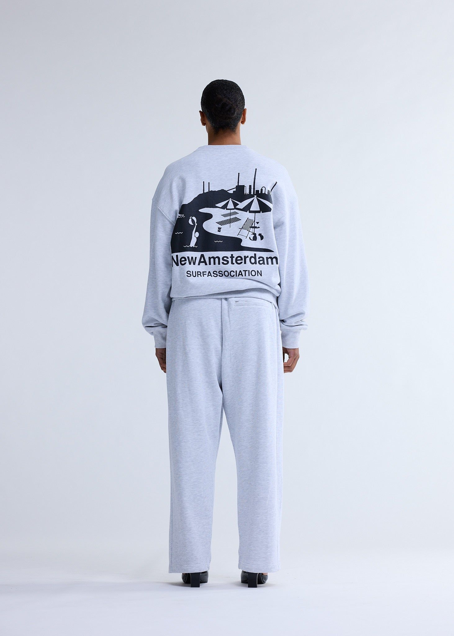 Out of stockCrewneck cut to a relaxed unisex fit. Detailed with New Amsterdam text logo embroidery on the front and beach sign artwork printed on the back. This crewneck is made of 100% heavyweight cotton.
