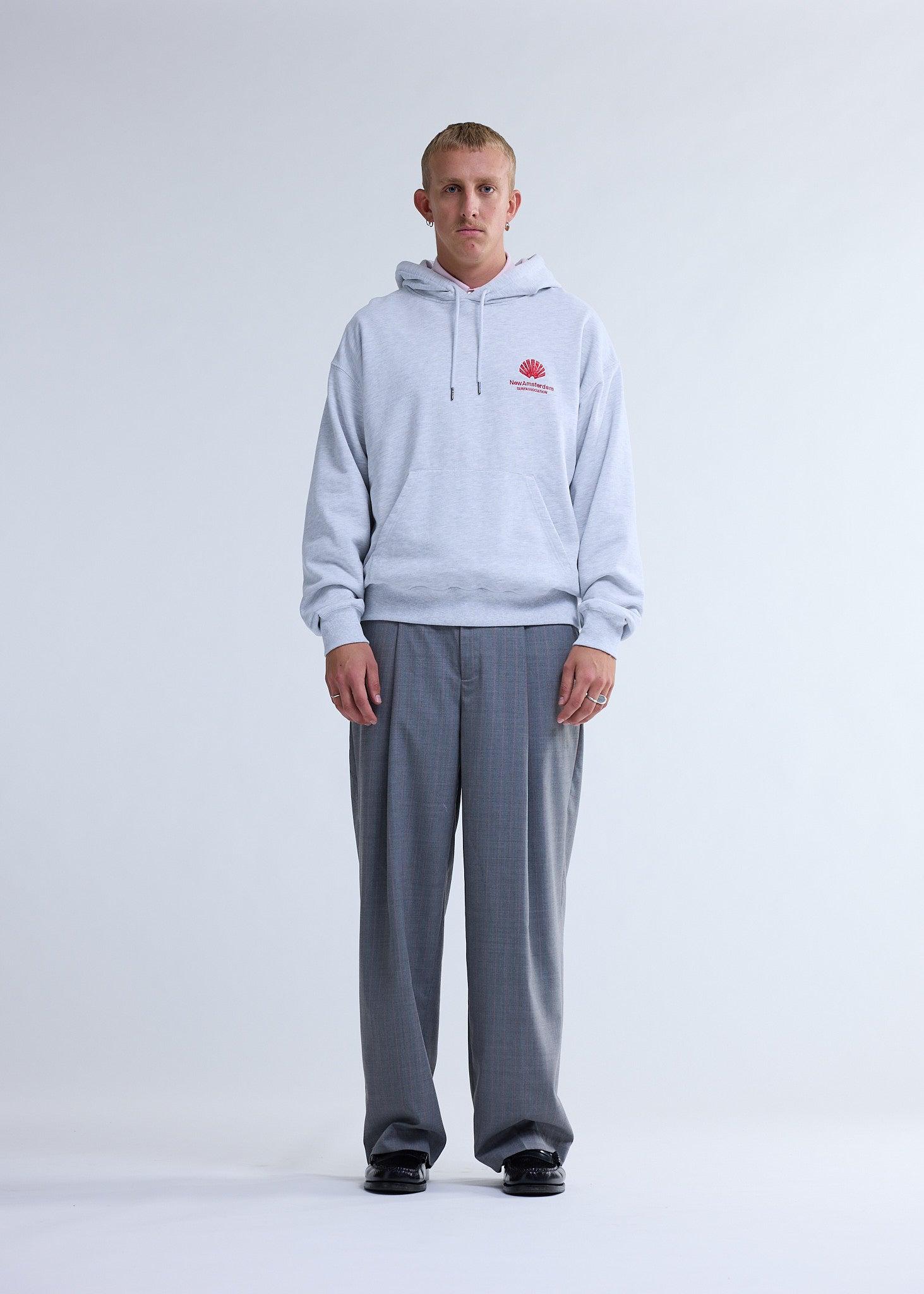 Hooded sweater, cut to a relaxed unisex fit. Detailed with oversized New Amsterdam logo embroidery on the front. This hoodie is made out of 100% soft cotton.