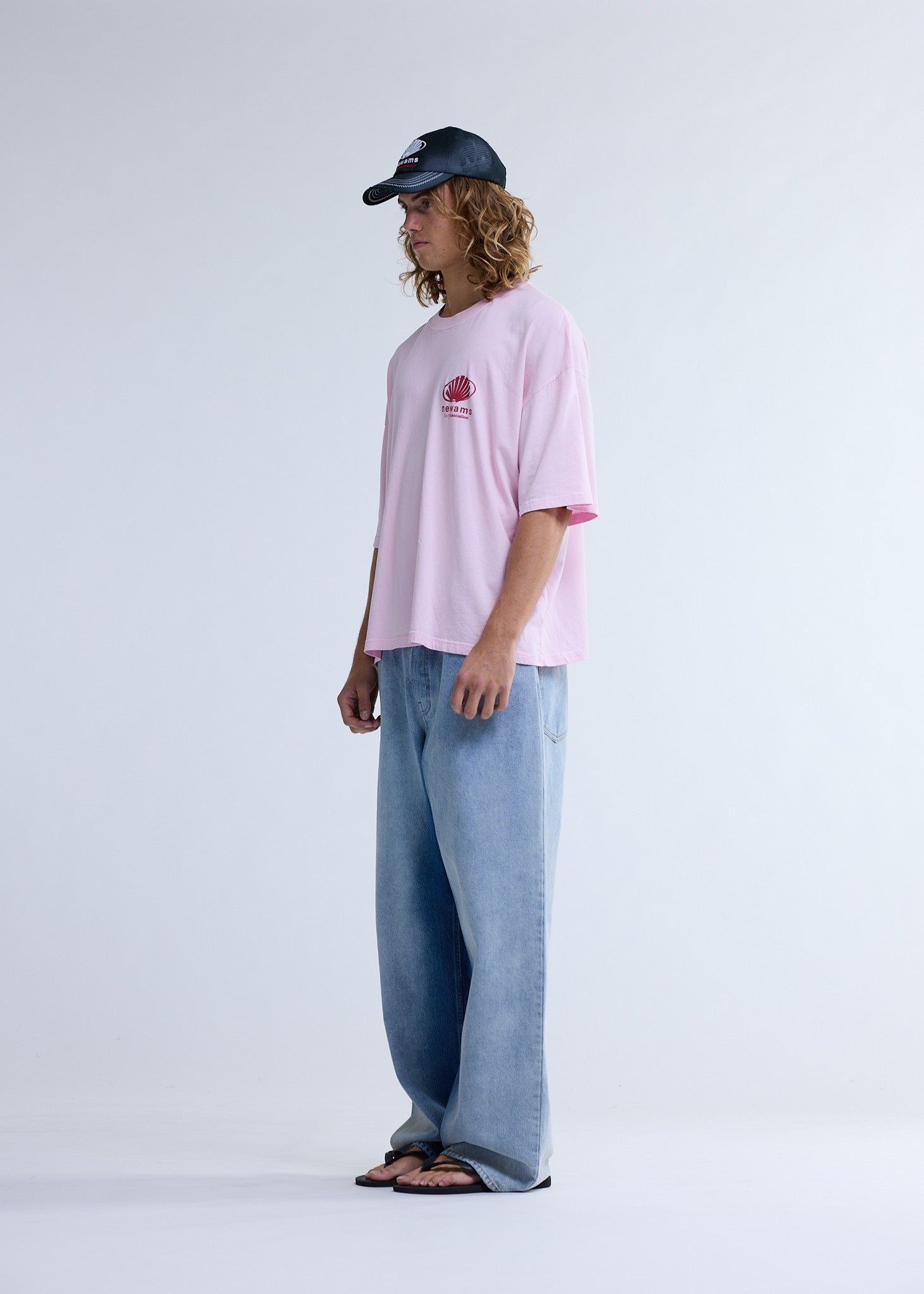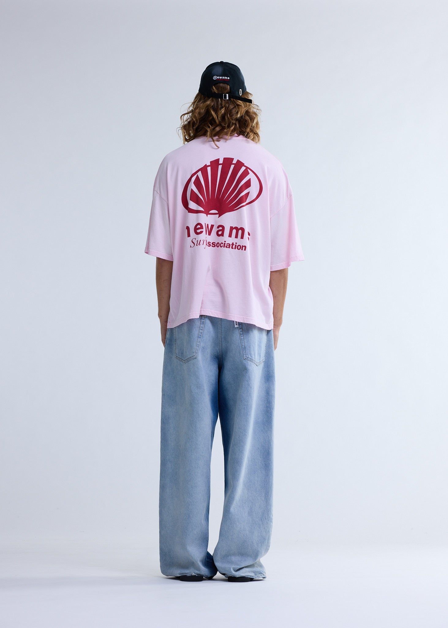 Crew neck t-shirt, cut to a oversized unisex fit with a really soft handfeel. Detailed with corportate New Amsterdam logo printed on the front and back. This tee is made of a 175 GSM soft cotton.