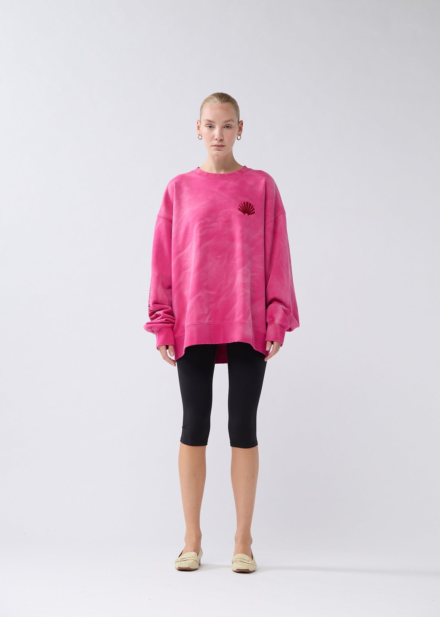 Romy is 172 cm tall and wears a size L