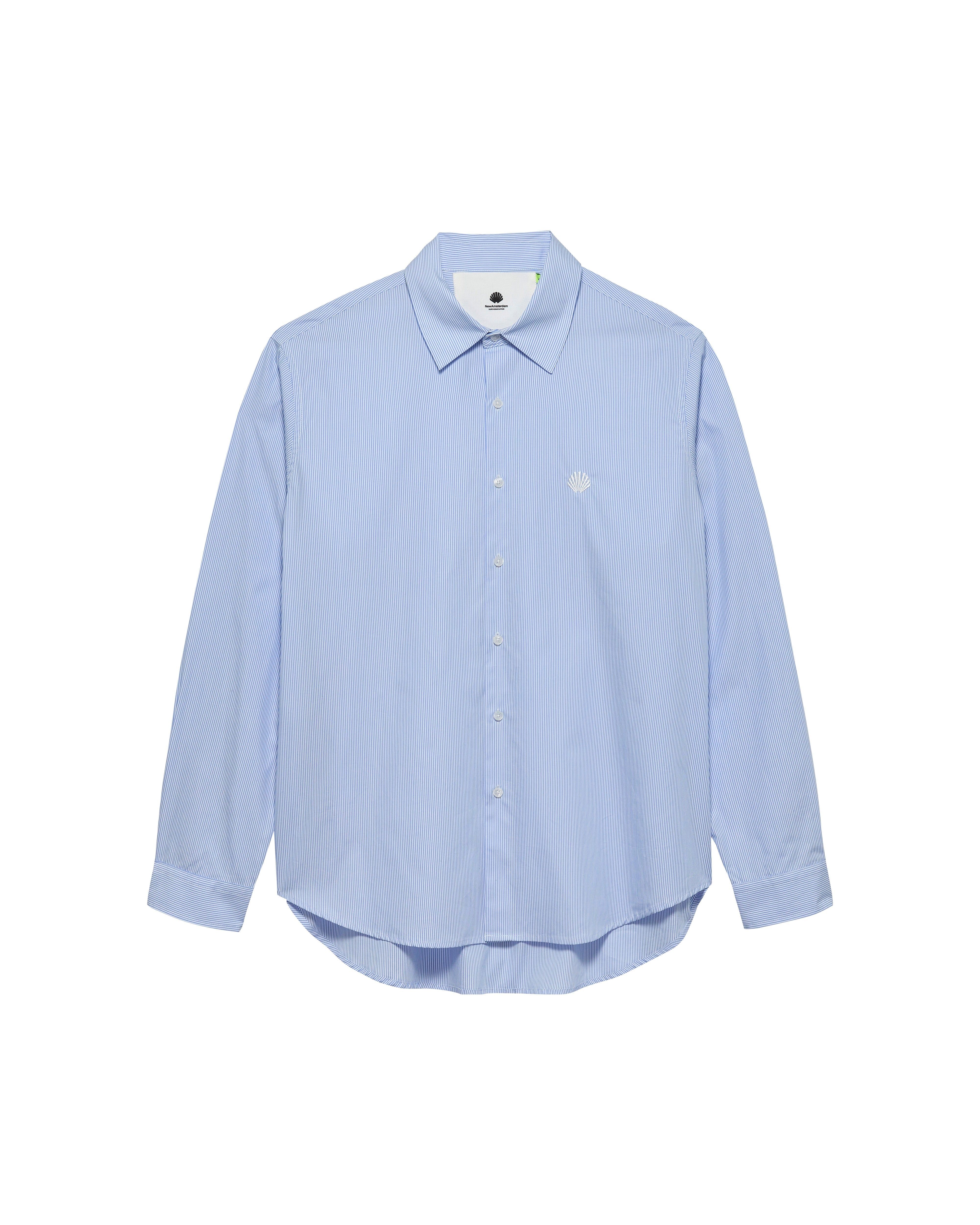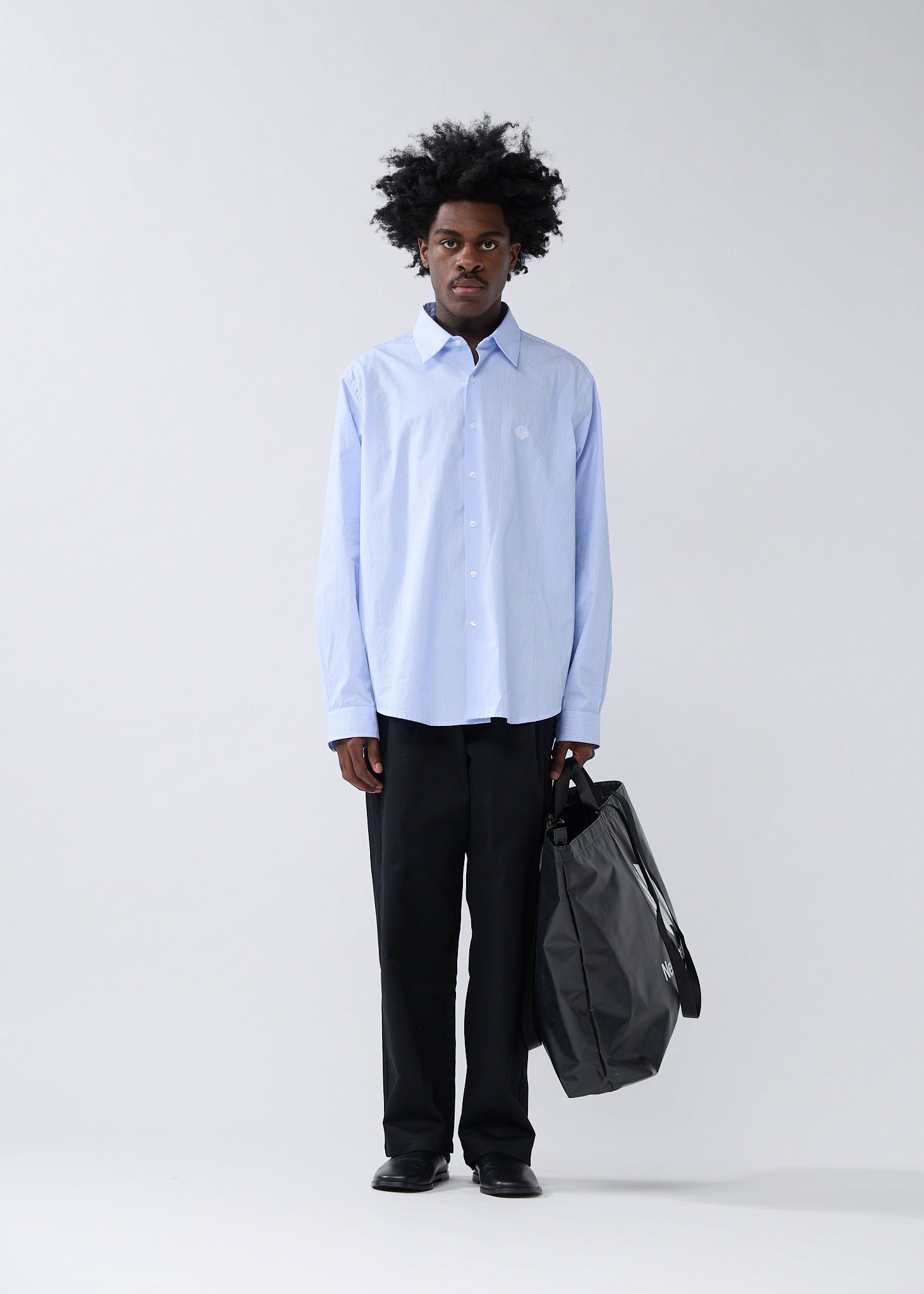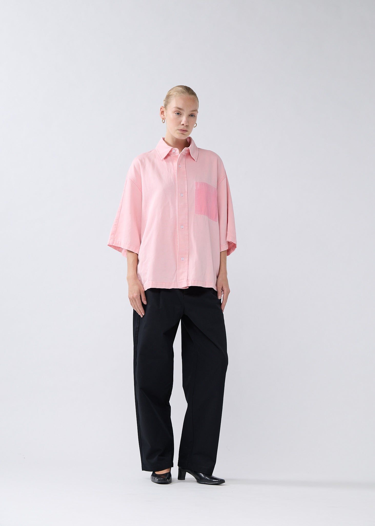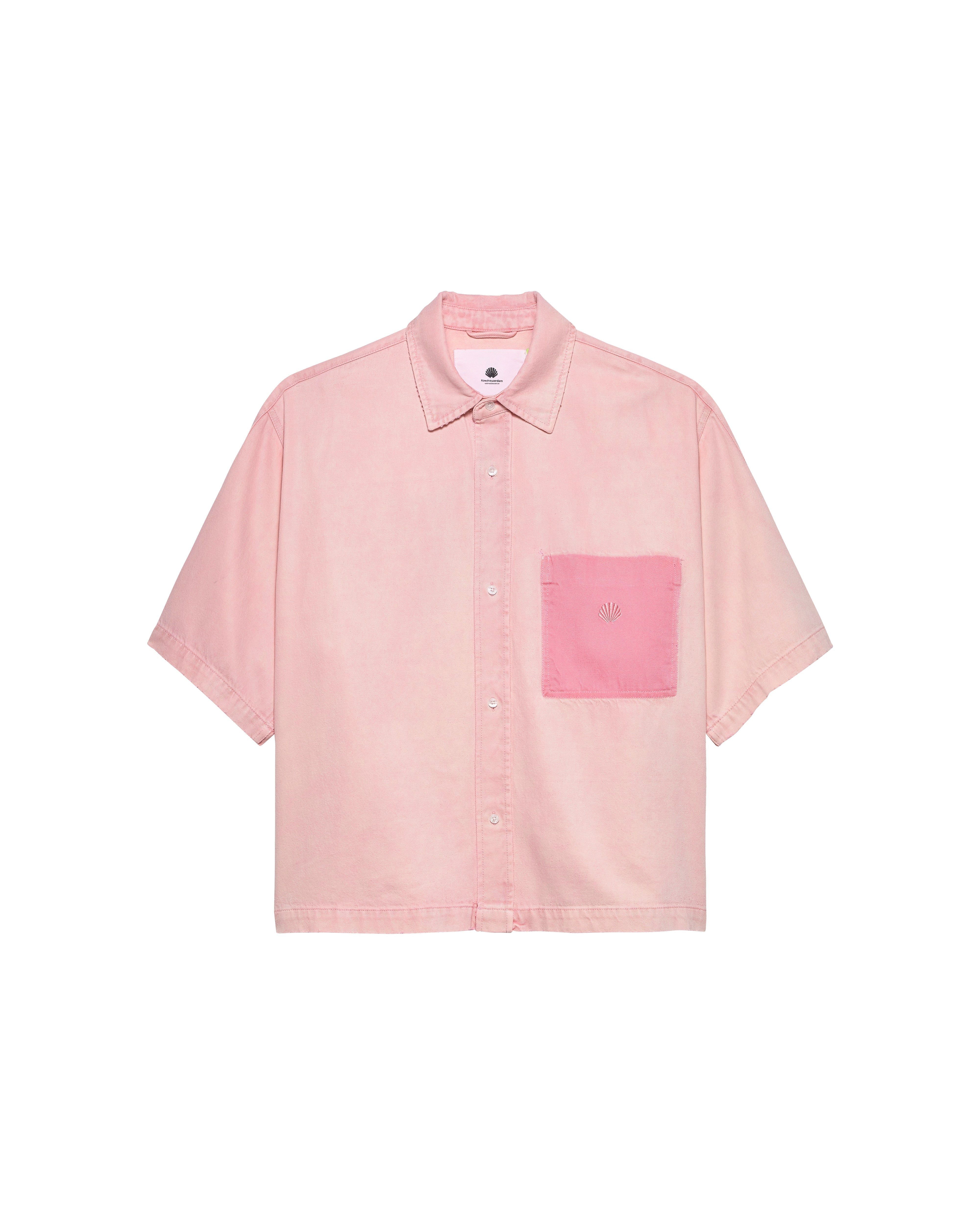 Low stockButton-up shirt is cut to a relaxed unisex fit with dropped shoulders and hip length. Complete with chest embroidery, chest pocket on the inside and centre front button-up closure. Made from cotton and lyocell fabric with washing.