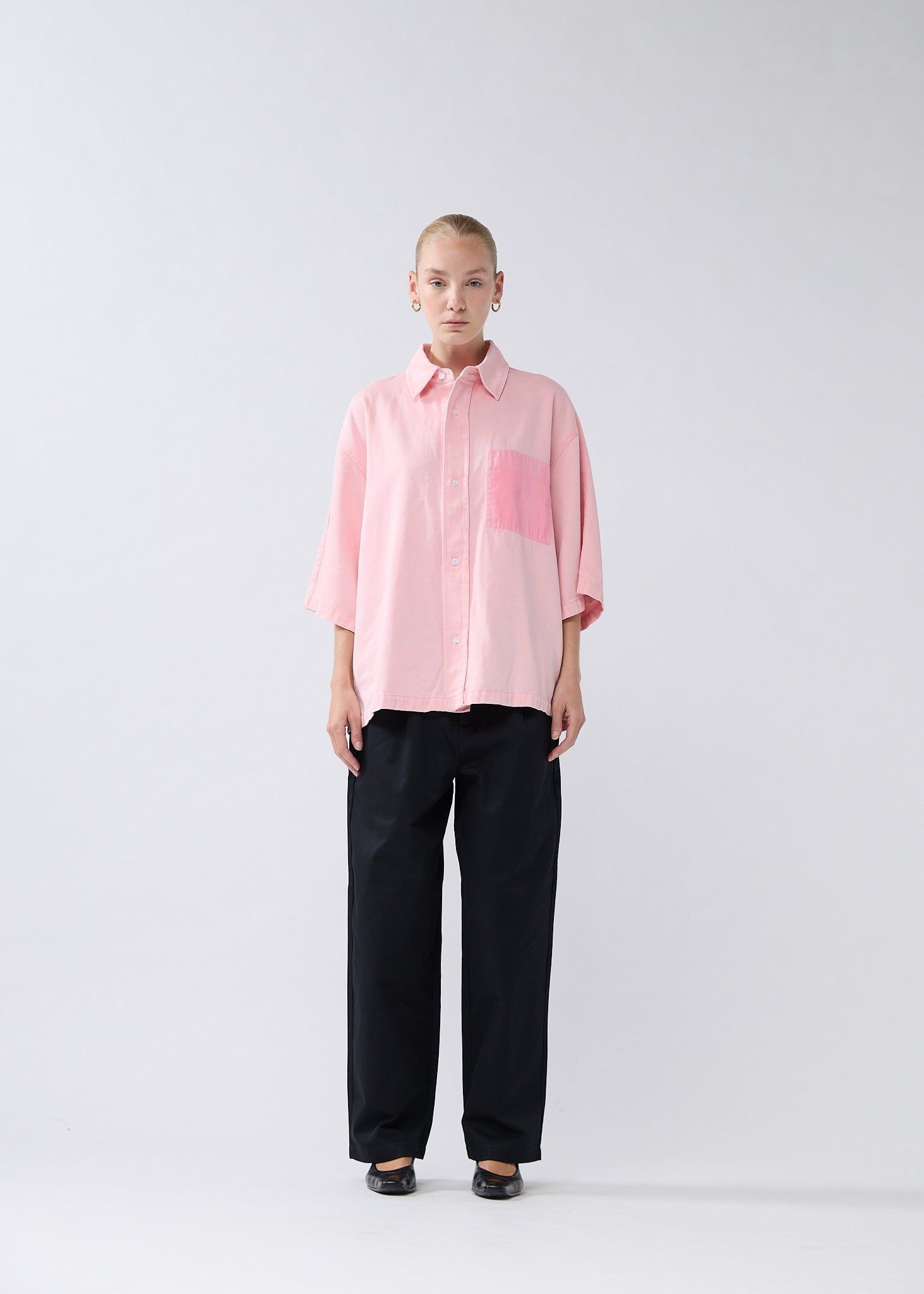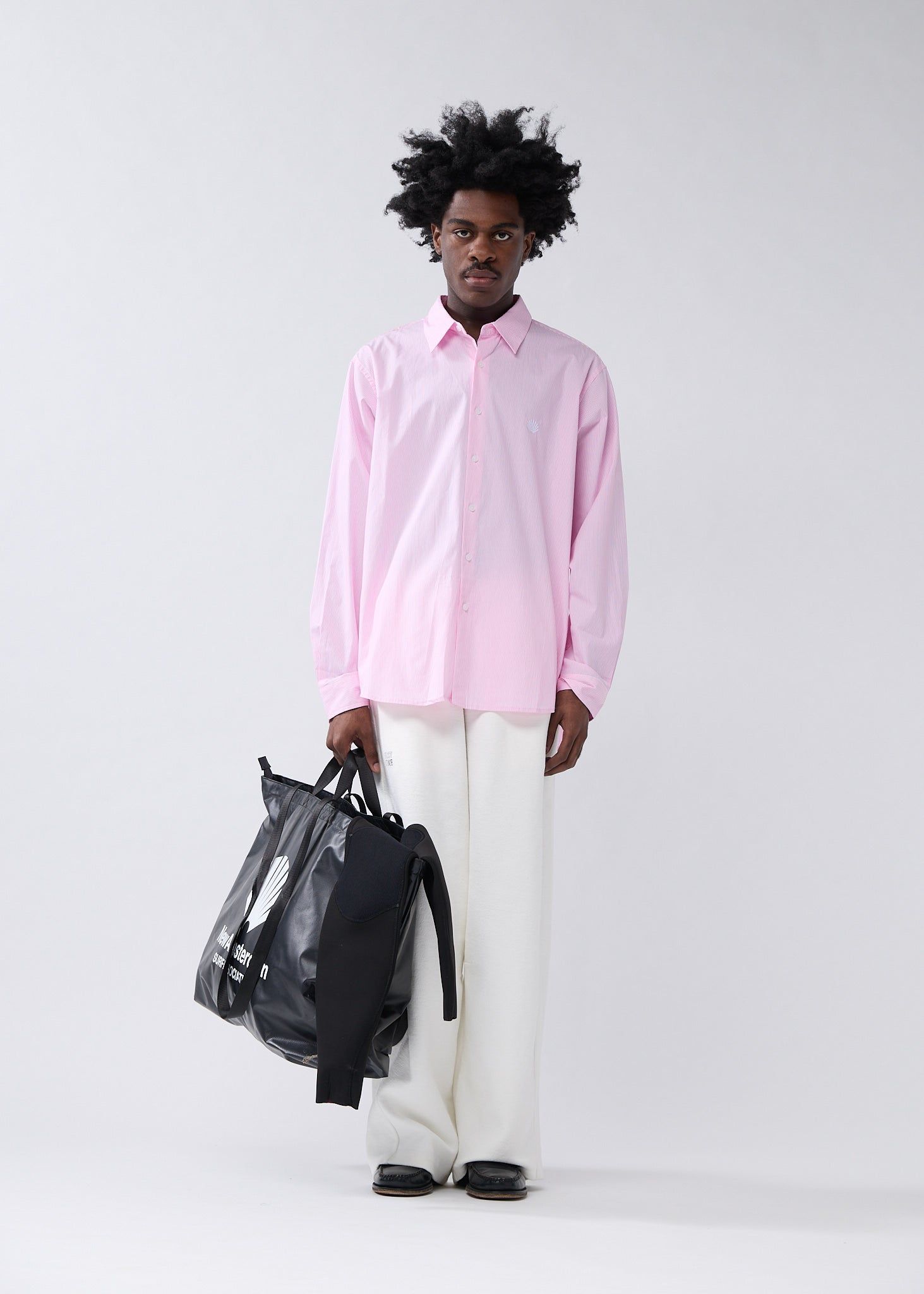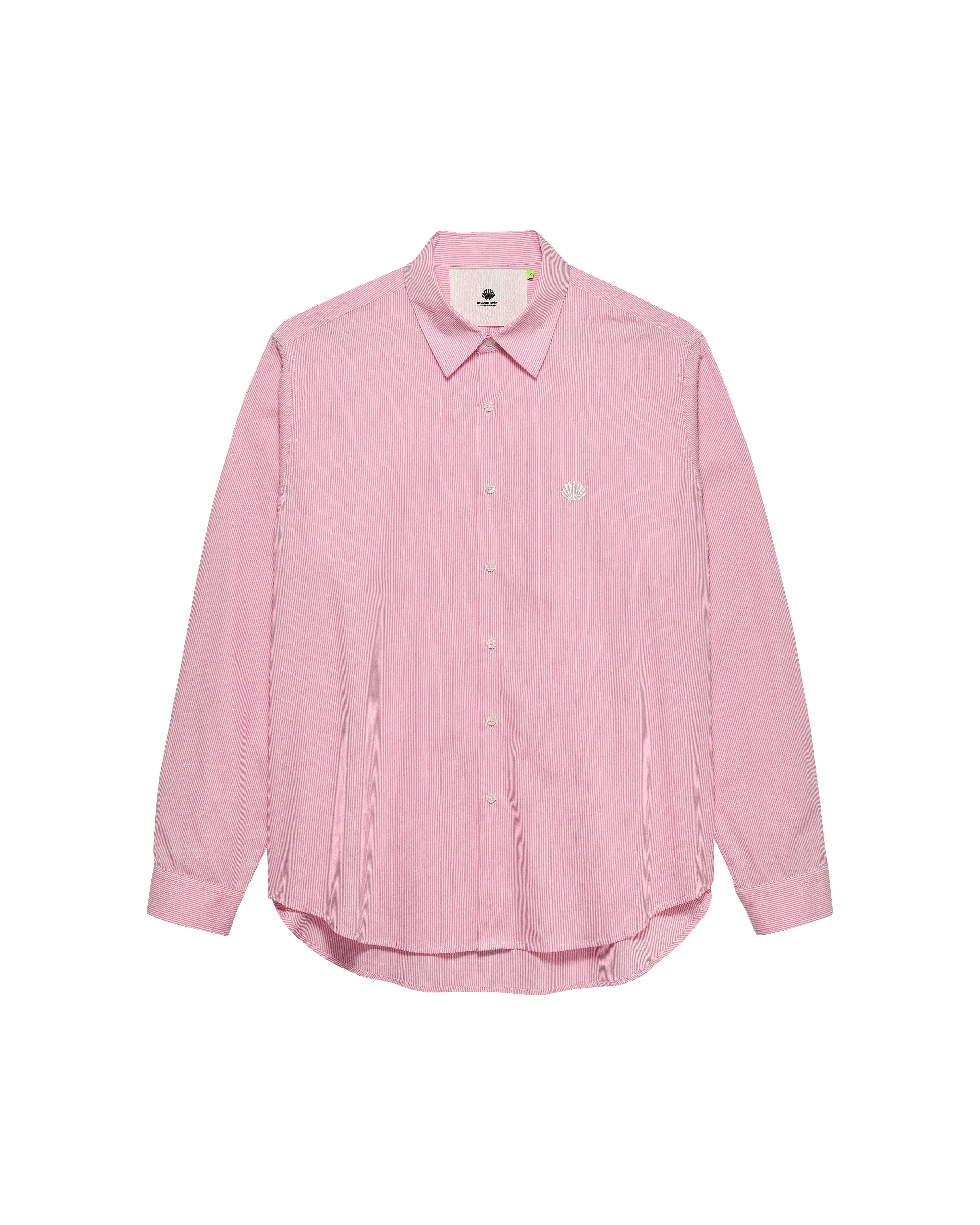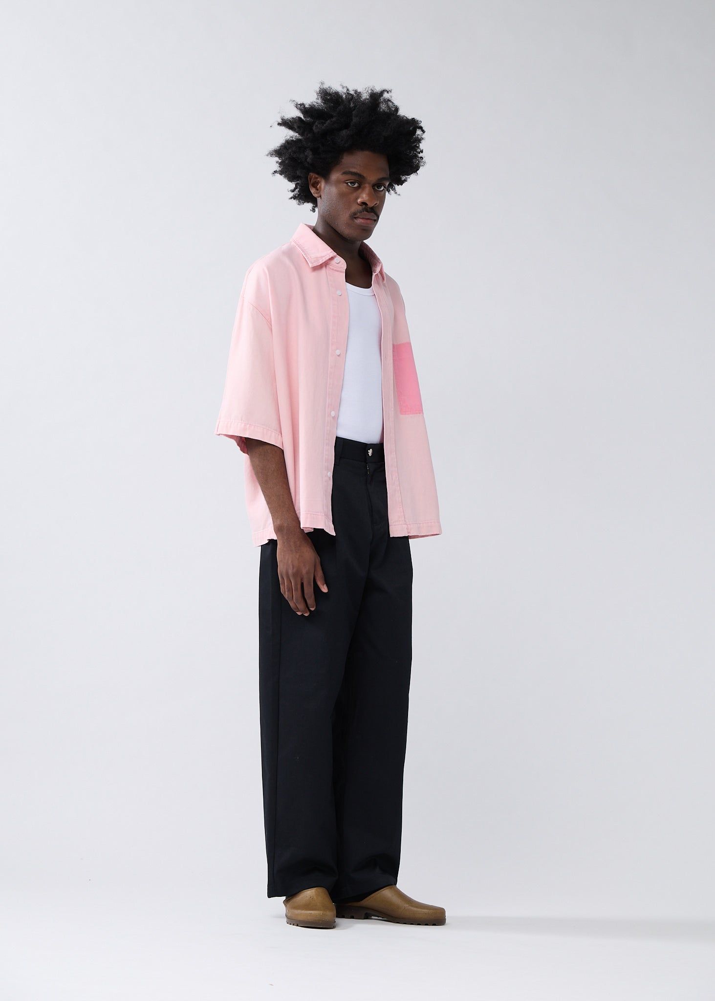 Low stockButton-up shirt is cut to a relaxed unisex fit with dropped shoulders and hip length. Complete with chest embroidery, chest pocket on the inside and centre front button-up closure. Made from cotton and lyocell fabric with washing.