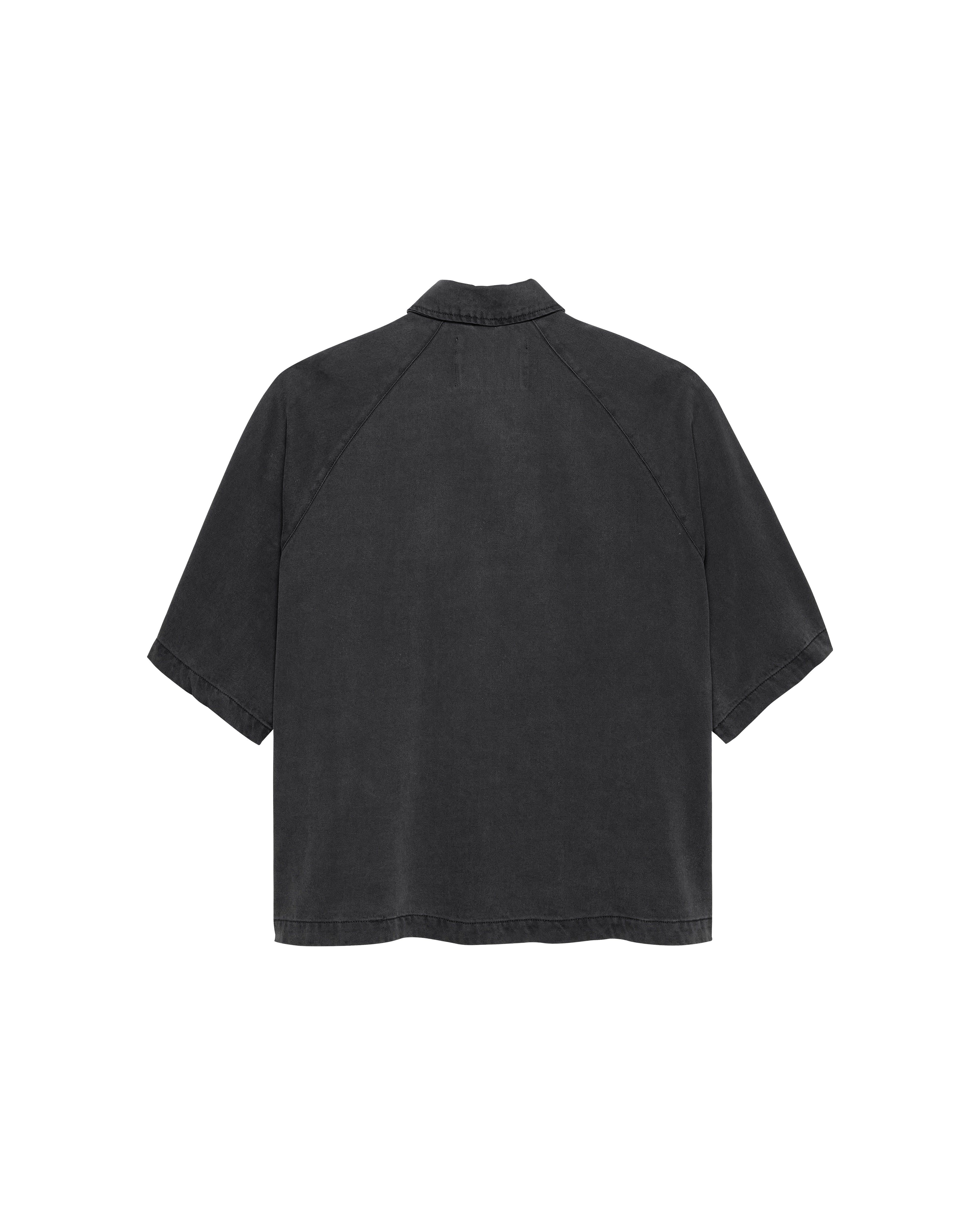 Out of stockButton-up shirt is cut to a relaxed unisex fit with dropped shoulders and hip length. Complete with chest embroidery, chest pocket on the inside and centre front button-up closure. Made from cotton and lyocell fabric with washing.