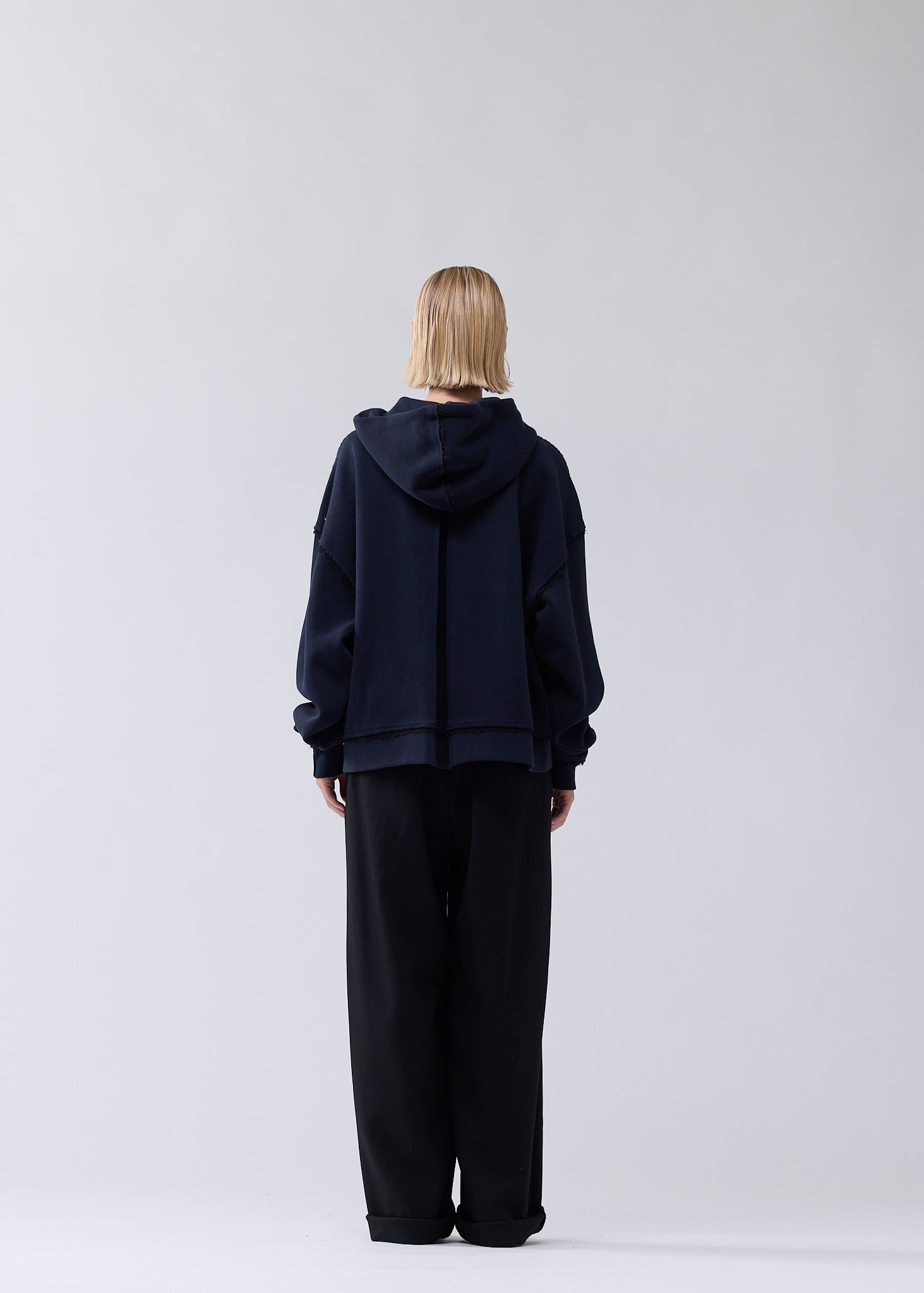 30% offLow stockHooded halfzip sweater, cut to an oversized cropped fit. Detailed with the New Amsterdam tonal woven label on the left chest. The garment is styled with a metal zipper, branded rubber cords, raw egde lace inserts and a center back pleat. This hoodie is made of a ribbed heavy weight cotton polyester mix.