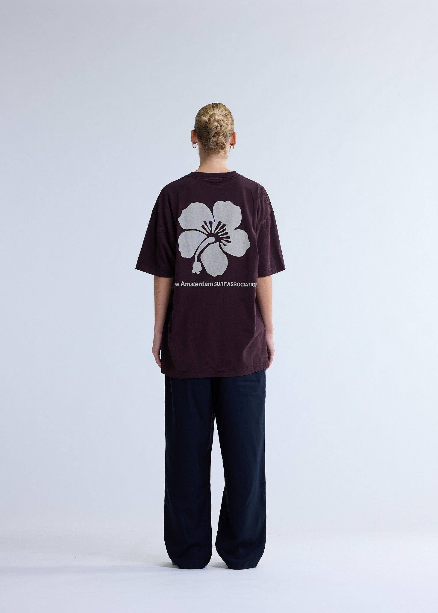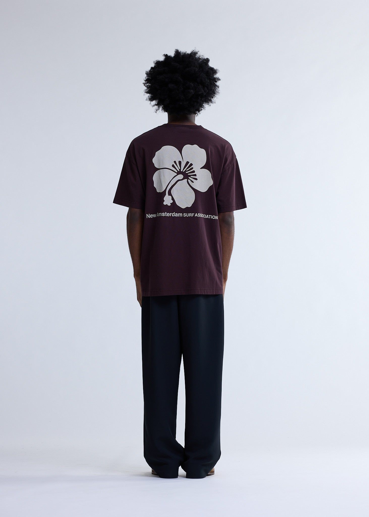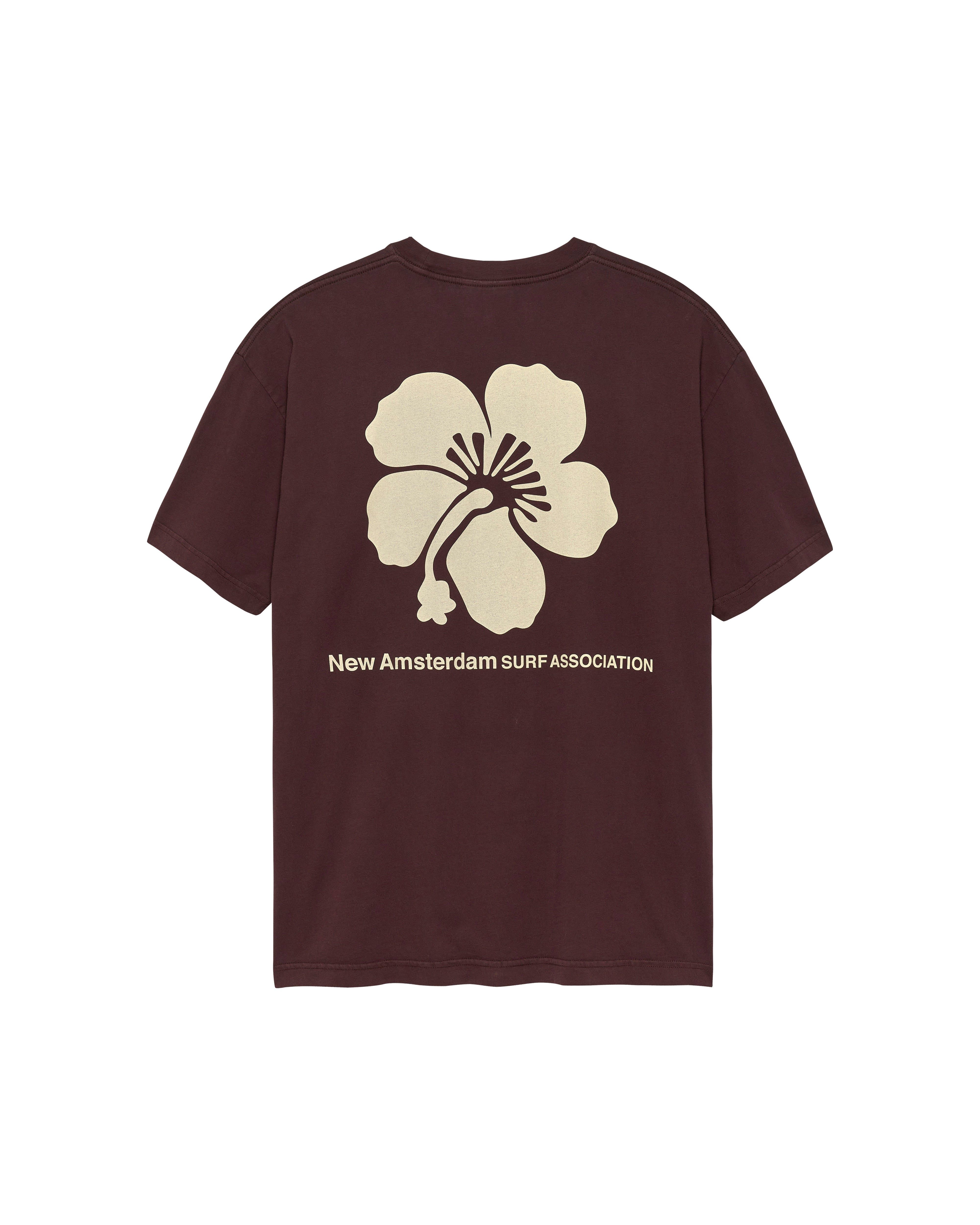 Low stockCrew neck t-shirt, cut to a regular unisex fit. Detailed with hibicus art work/text digital discharge printed on the front and the back. This tee is made of 100% pigment dyed/garment washed cotton.