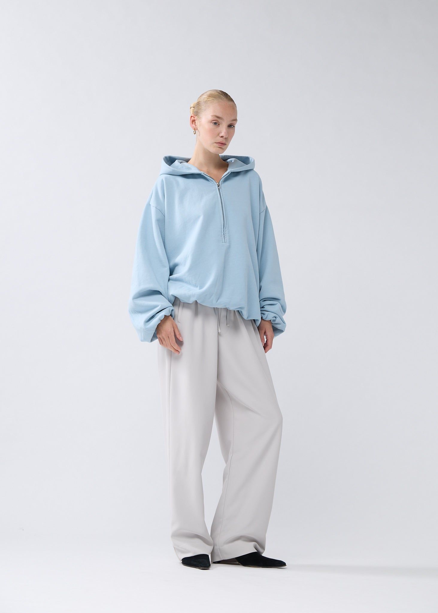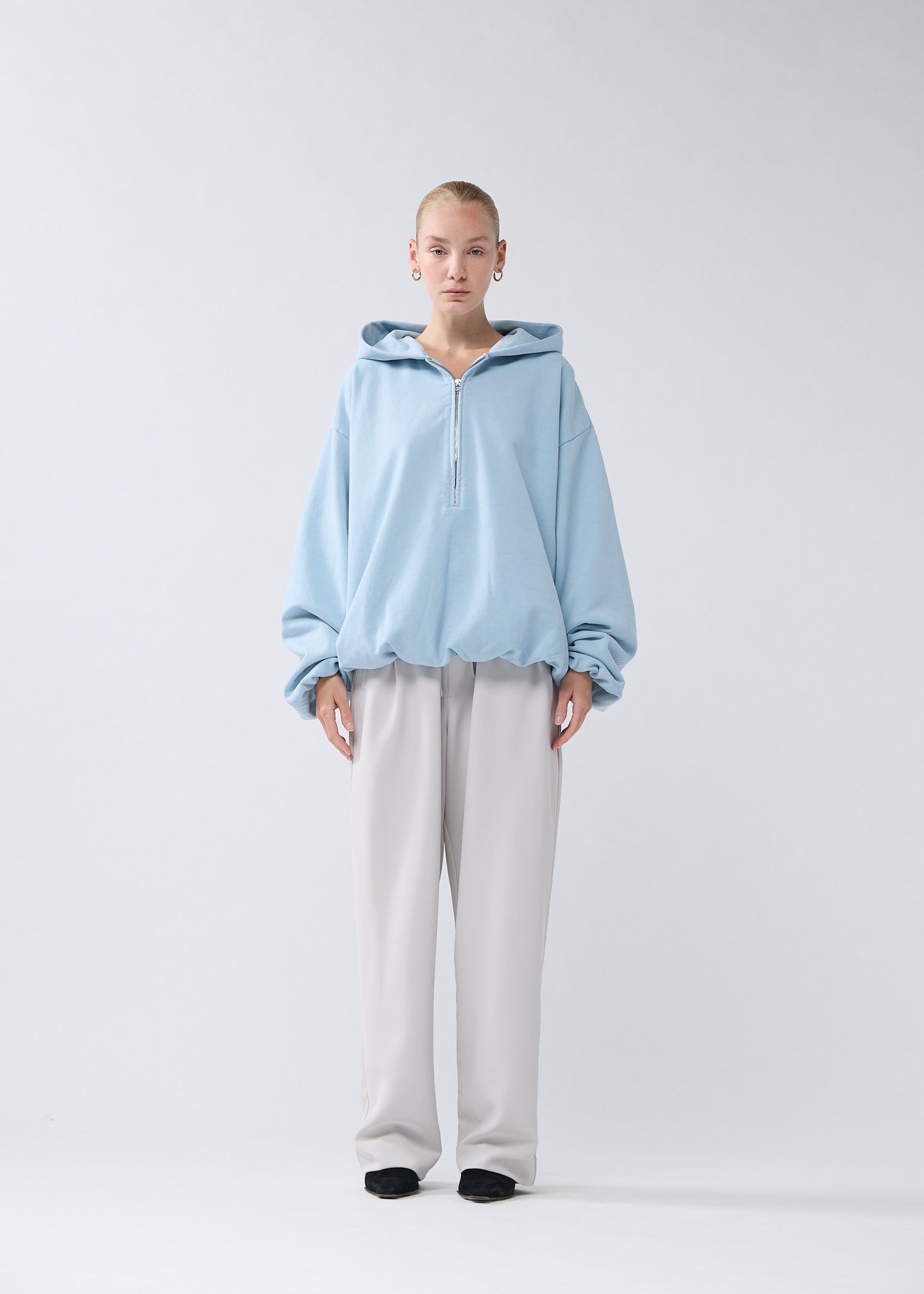 40% offLow stockClassic half-zip hoodie cut to an oversized unisex fit with an inflatable look. Detailed with a metal shell rivet on the front. This hoodie is made of a heavyweight 455 GSM garment-dyed cotton terry and treated with PP-spray. The inflated silhouette is created by elasticated cuffs and hem on the inside, and the piece is fully lined with soft cotton jersey.
