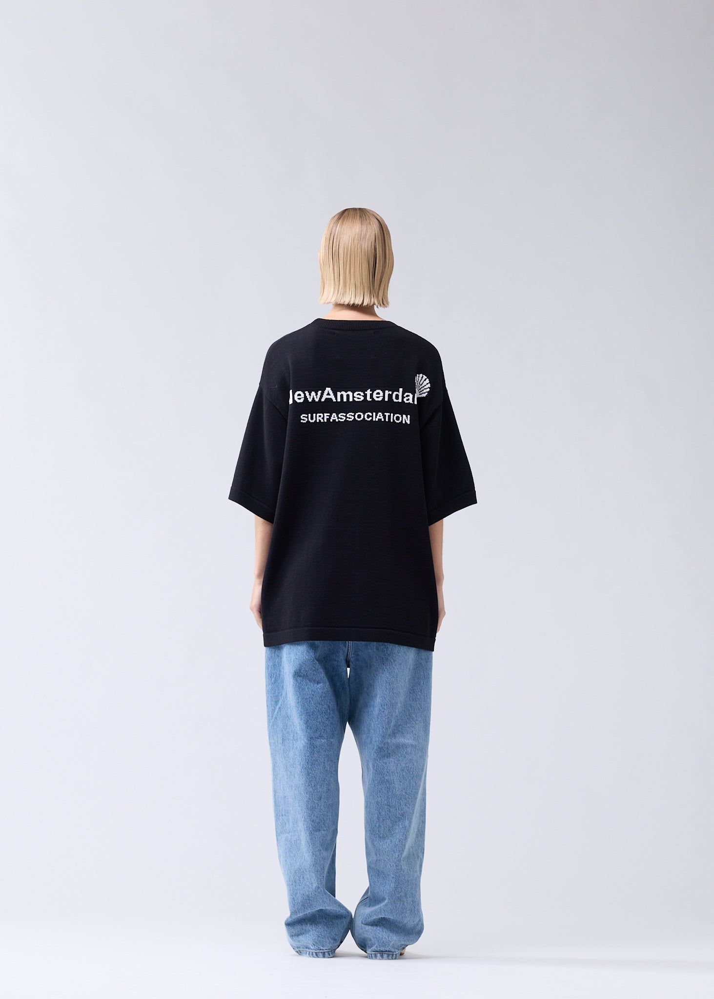 40% offThe Knitted Logo Tee Black/White from New Amsterdam Surf Association is a modern streetwear essential. This black unisex T-shirt is cut to a relaxed fit and detailed with the brand’s signature logo intarsia on both the front and back.