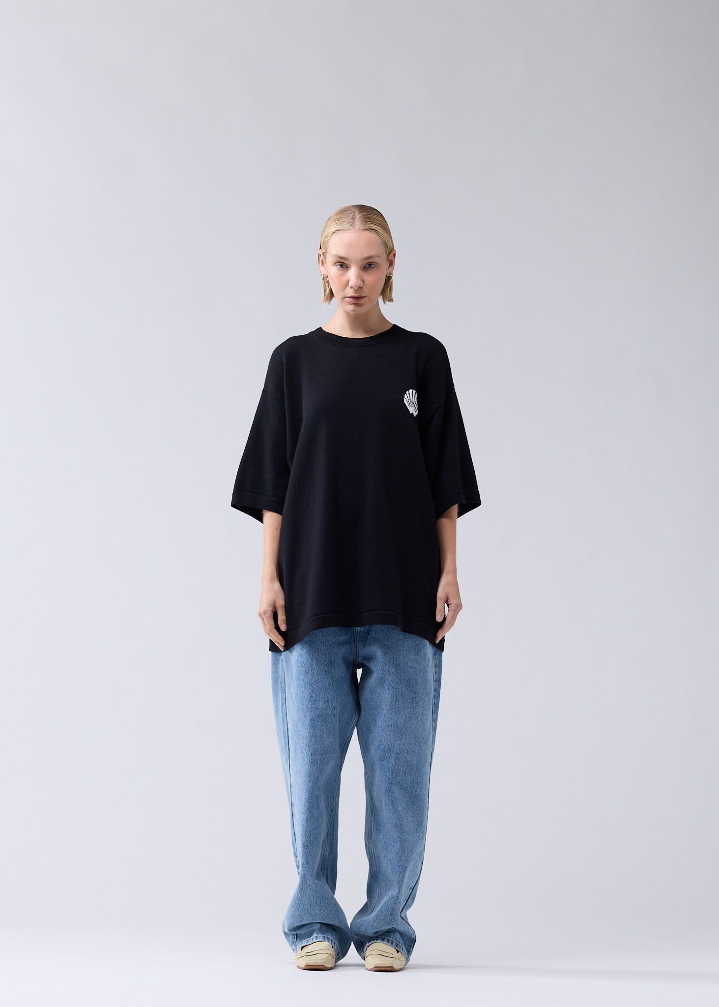 KNITTED LOGO TEE BLACK/WHITE