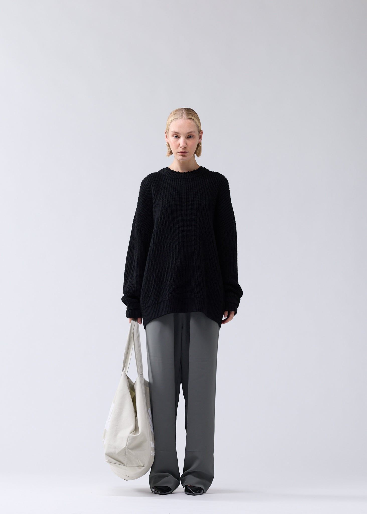 40% offThe Logo raw edge knit is a unisex sweater with a modern edge. Made with a rib knit construction and cut to a regular fit, it features double-layered neckline and cuffs with raw-edge finishes for a subtle distressed look.