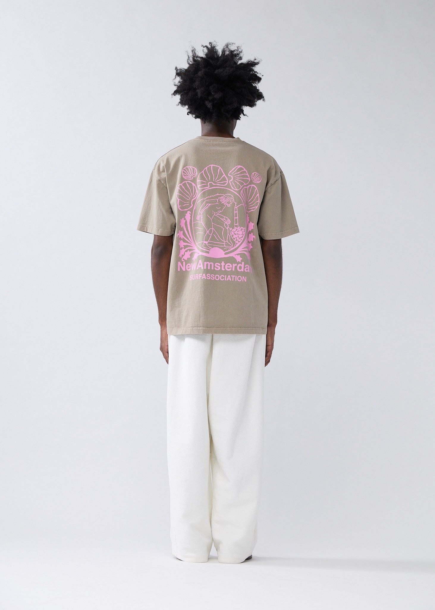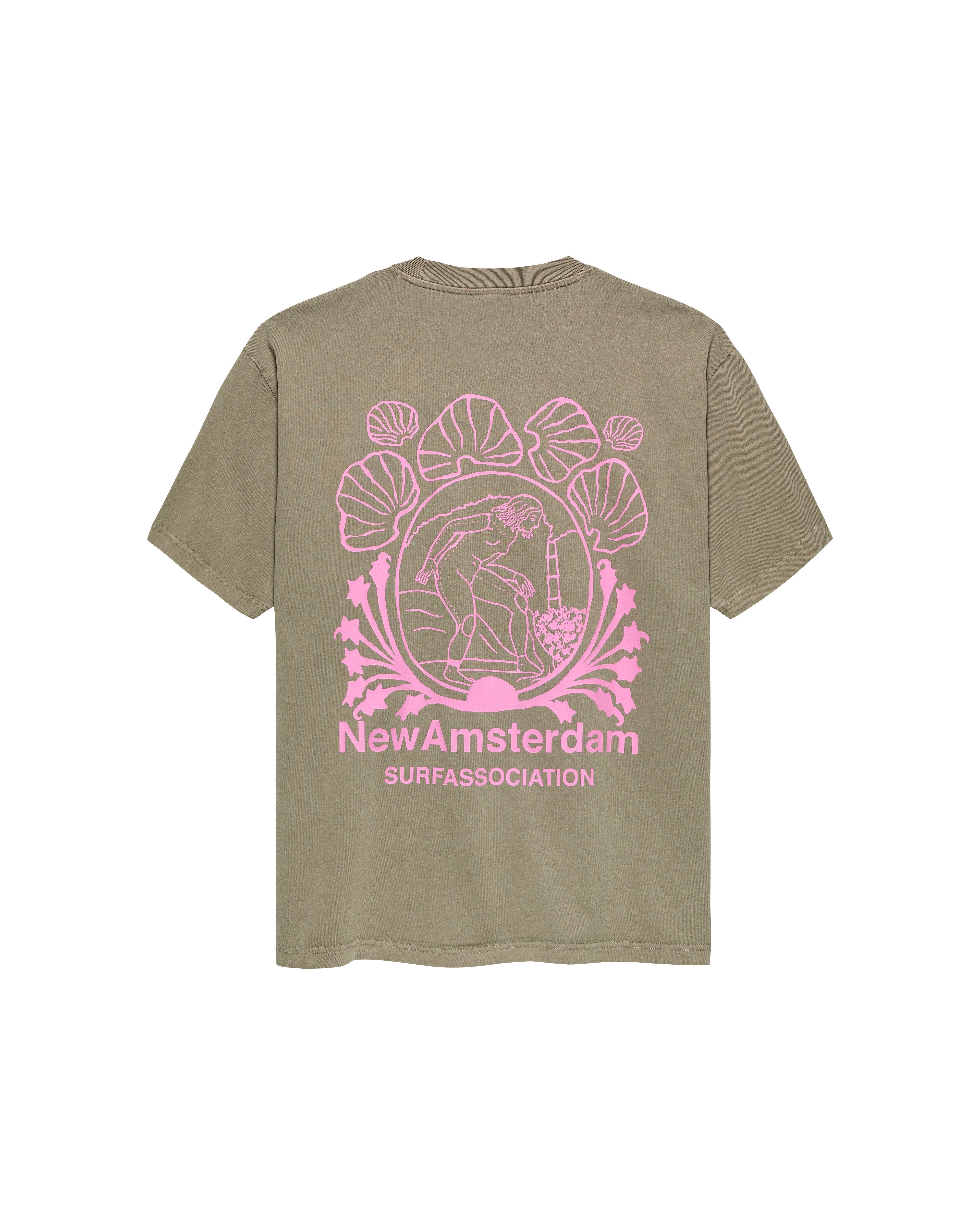 Crew neck t-shirt, cut to a regular unisex fit. Detailed with a seasonal branded 'lost surfer' artwork screen print on the front and back. This tee is made of a 240 GSM garment dyed cotton.