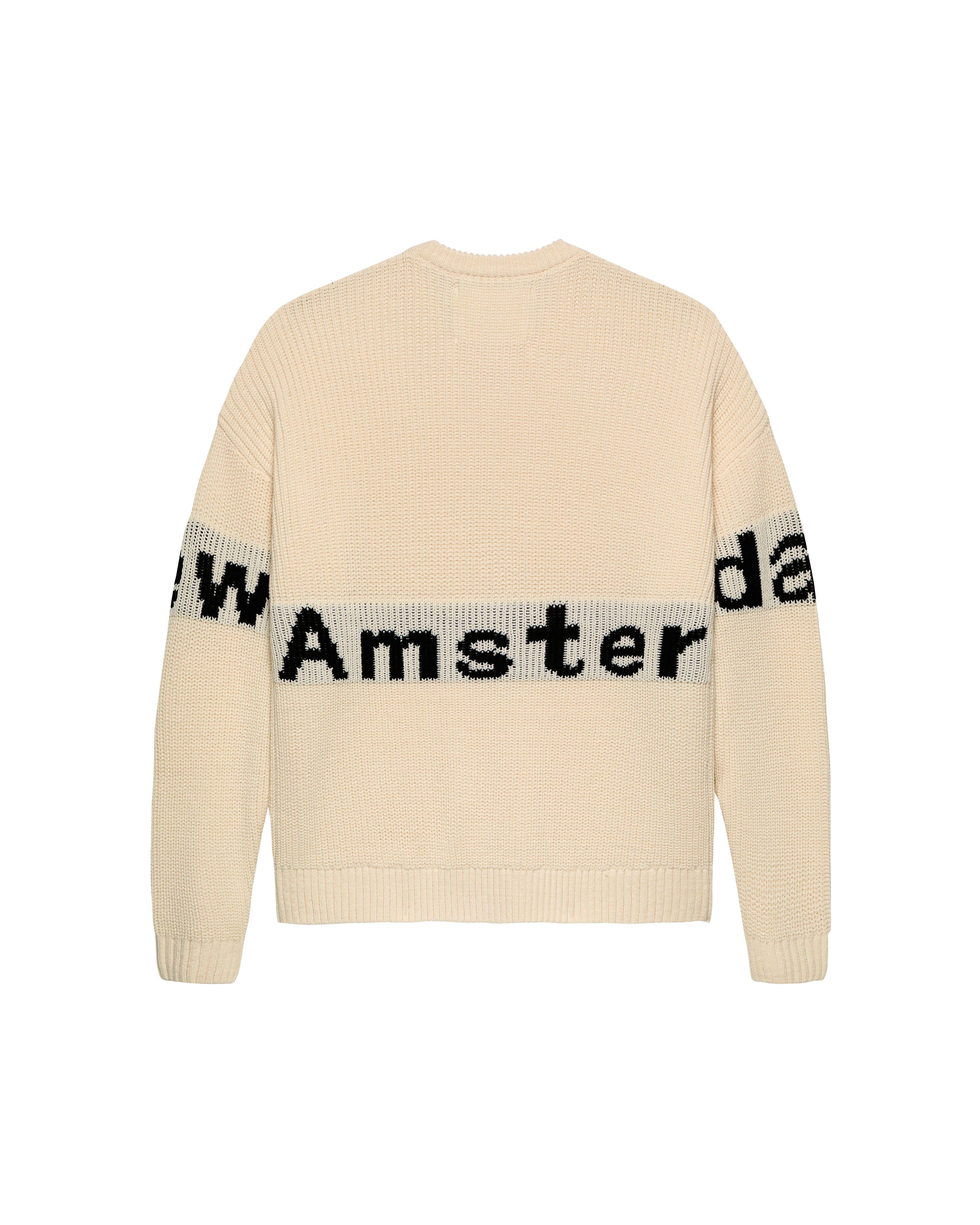 45% offLow stockKnitted crewneck cut to a regular unisex fit. Detailed with a New Amsterdam name jacquard on the back and arms.