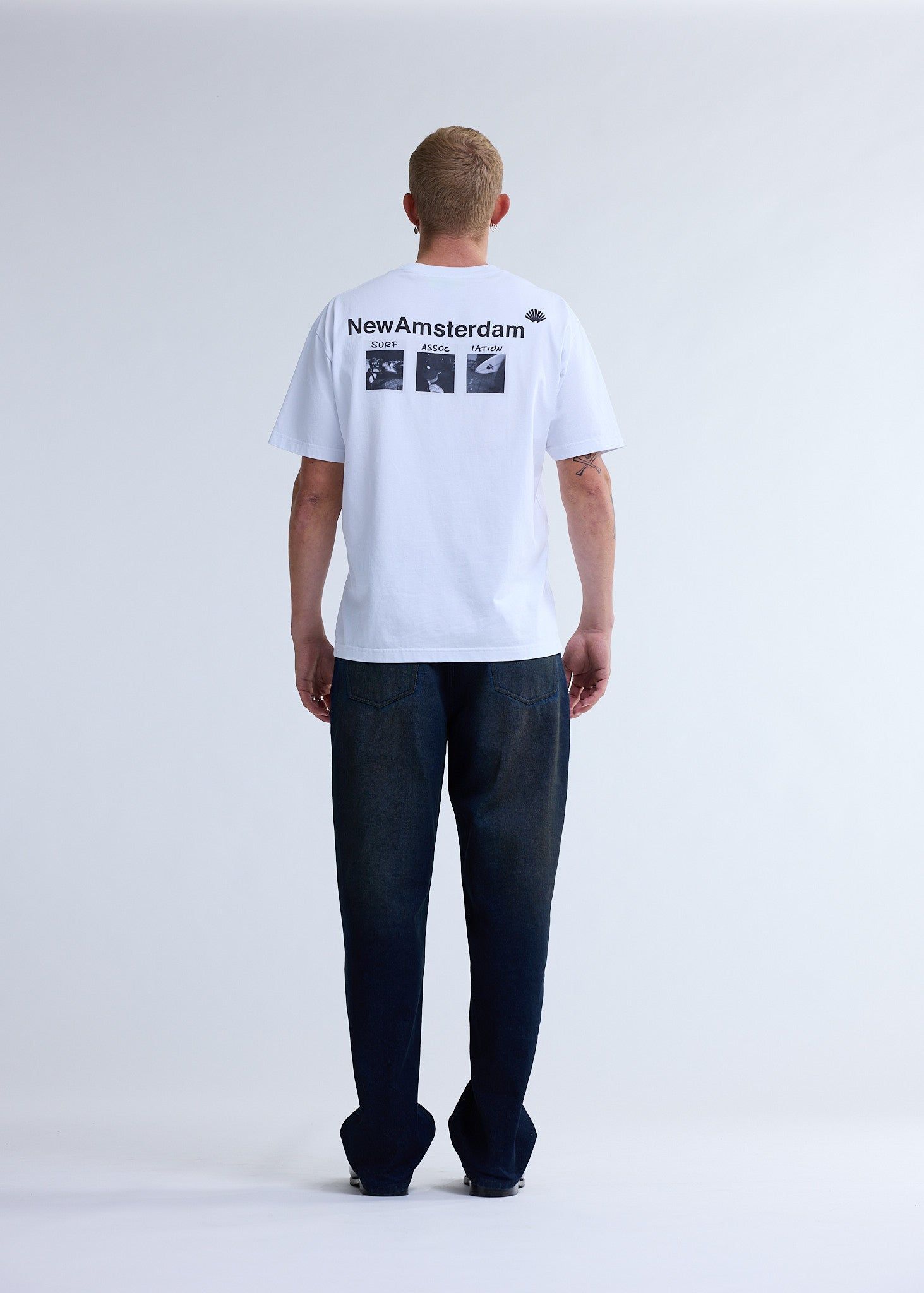 Low stockCrew neck t-shirt, cut to a regular unisex fit. Detailed with polaroid photo art work printed on back and text logo in the front. This tee is made of 100% cotton.