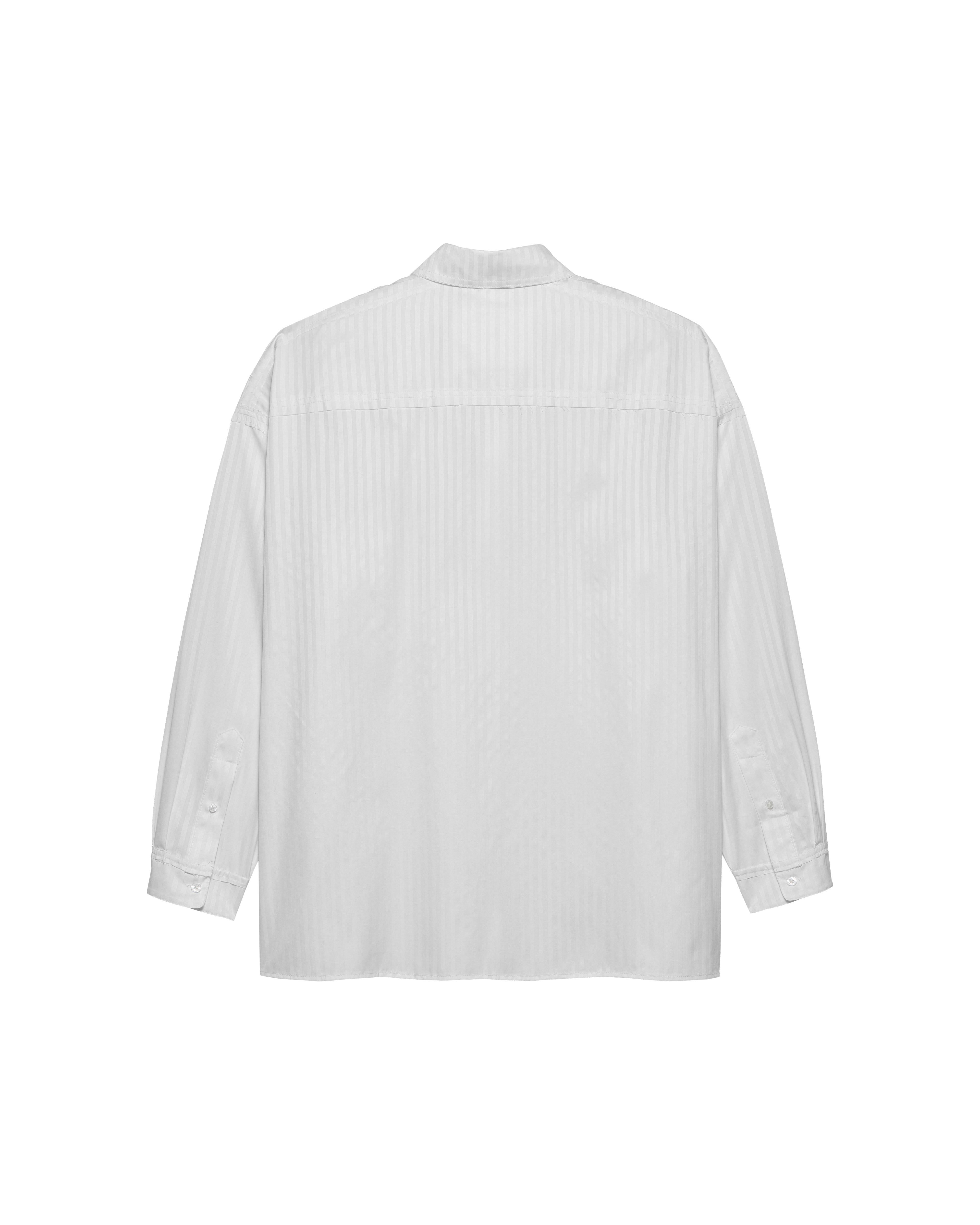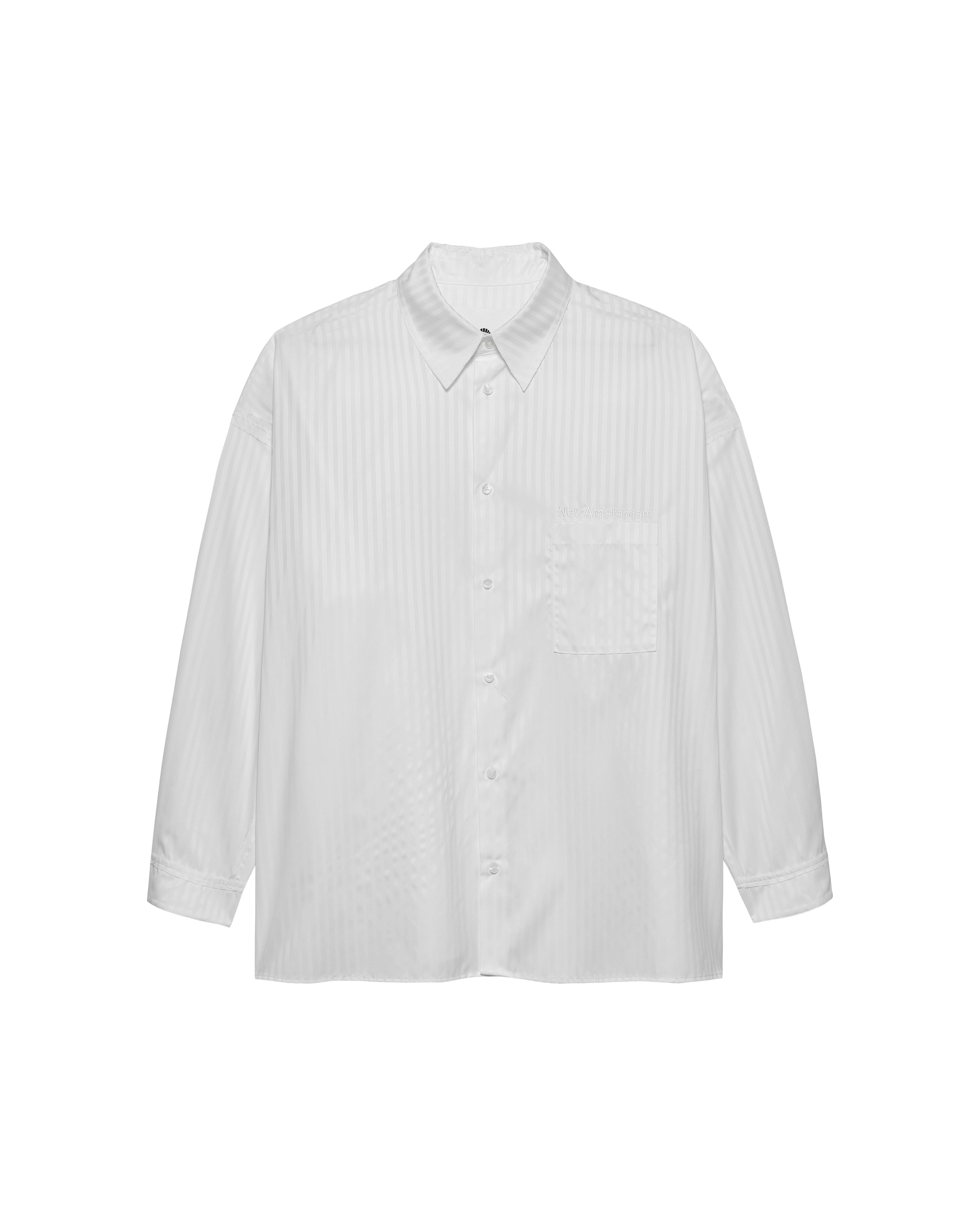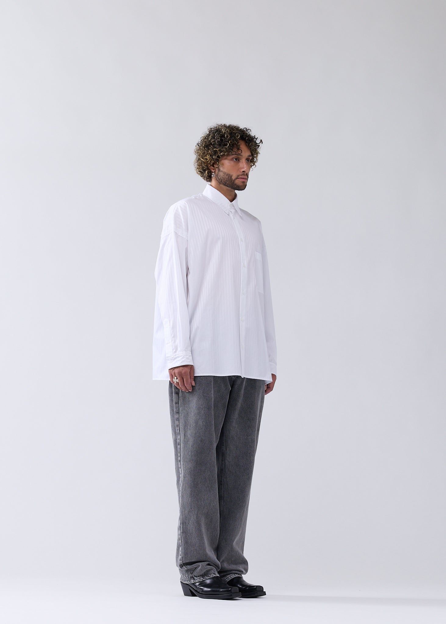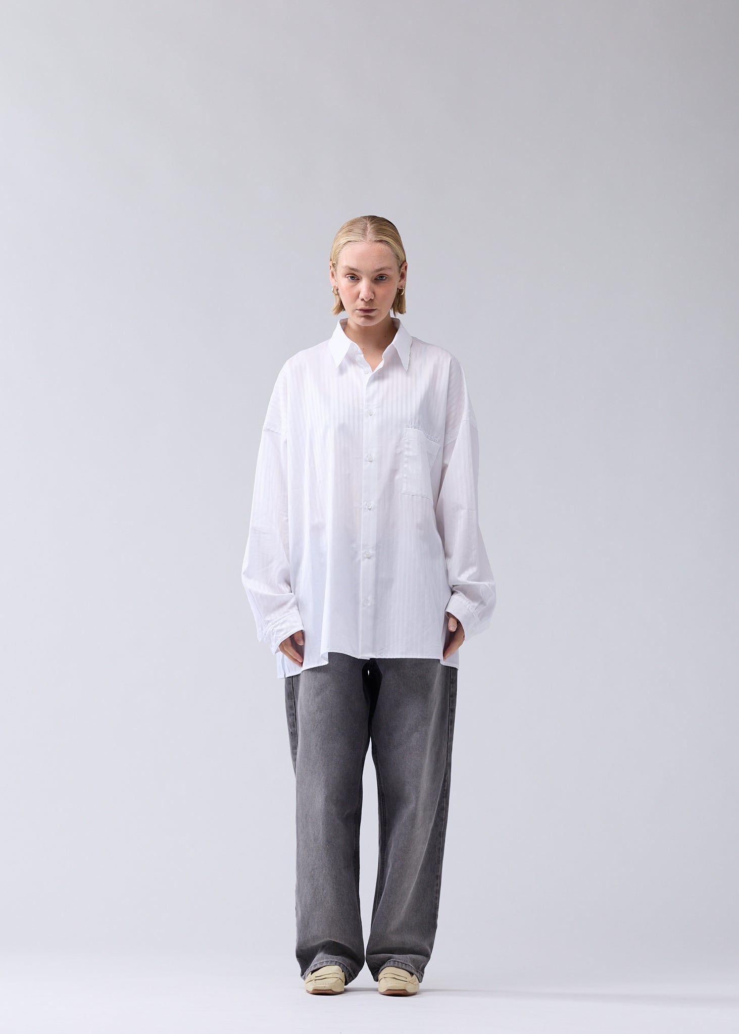 30% offLow stockButton-up shirt crafted from a cotton jacquard stripe, designed in a oversized fit that falls below the hip. Features a chest pocket with subtle embroidery detail and is finished with raw edge seams at the shoulder, armhole and cuffs.