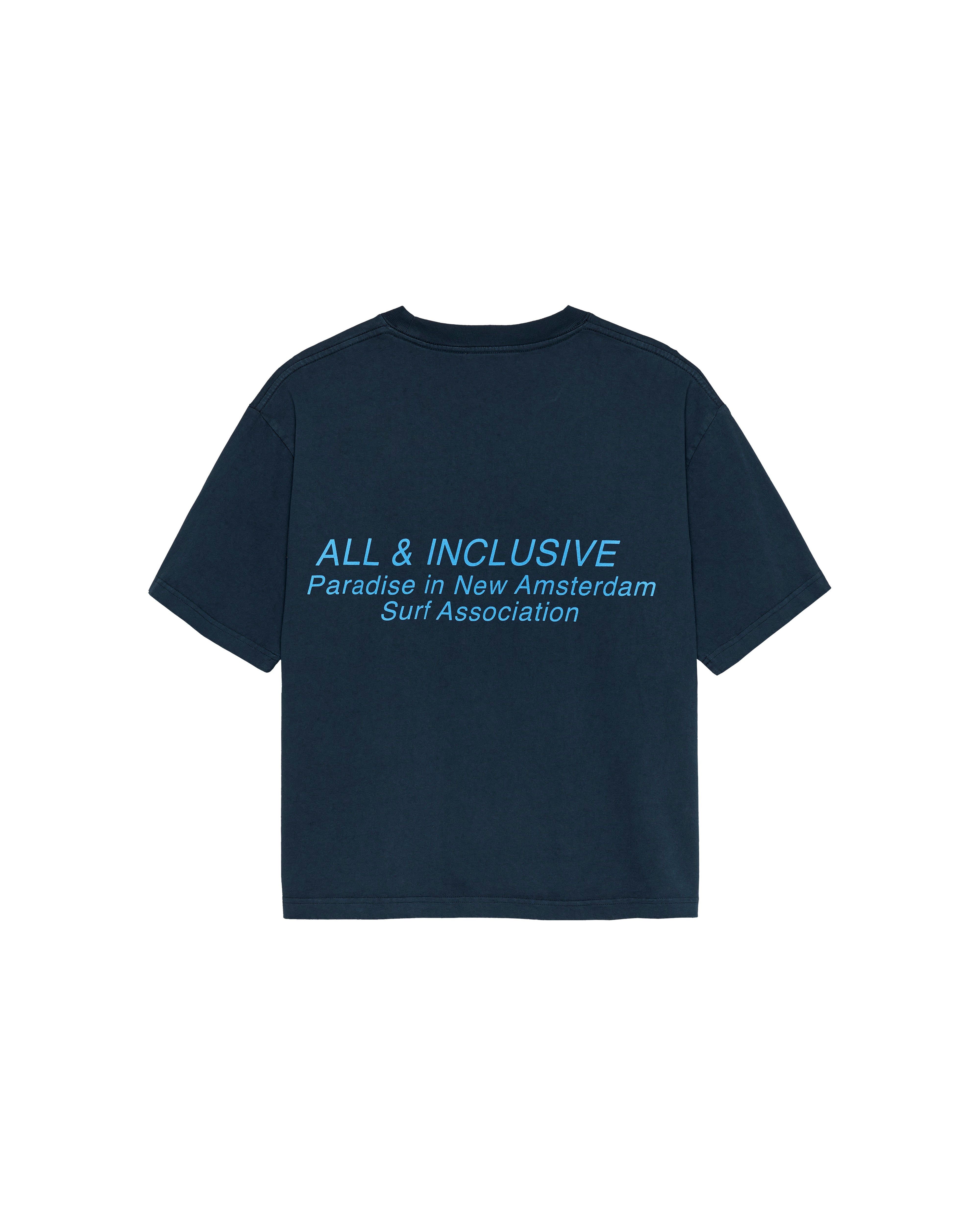 Artwork is Inspired by a vintage Miami resort tee, this design reimagines luxury getaways with a New Amsterdam Surf Association twist.