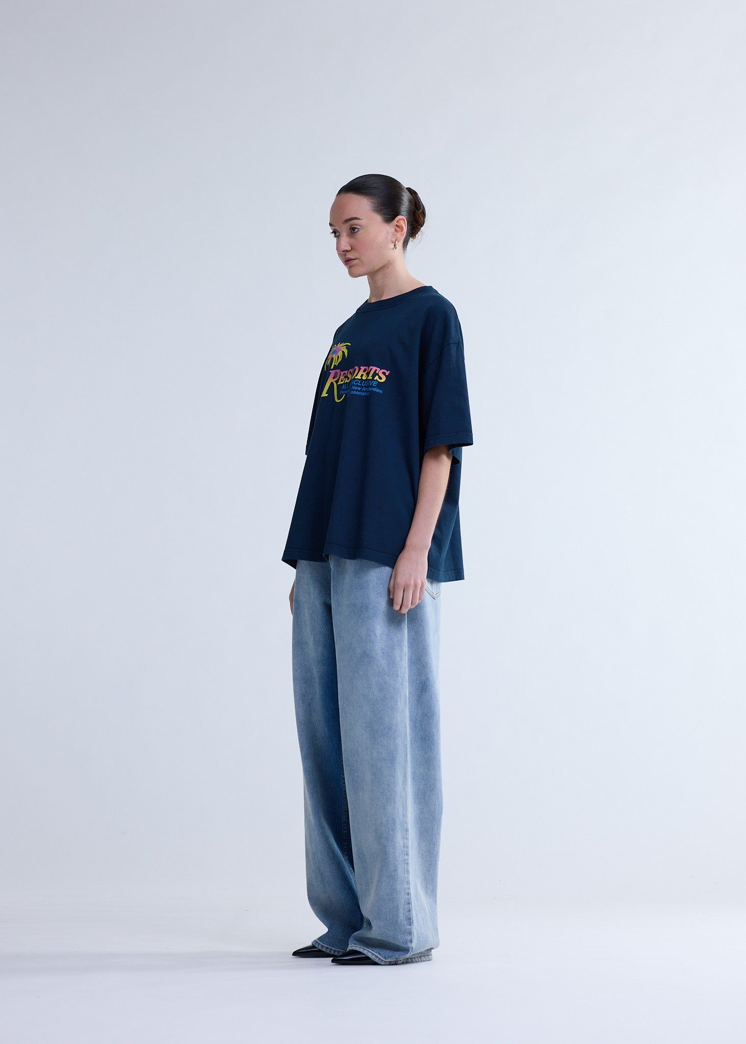 Crew neck t-shirt, cut to a cropped unisex fit. Detailed with resort artwork printed on front. This tee is made of 100% cotton.