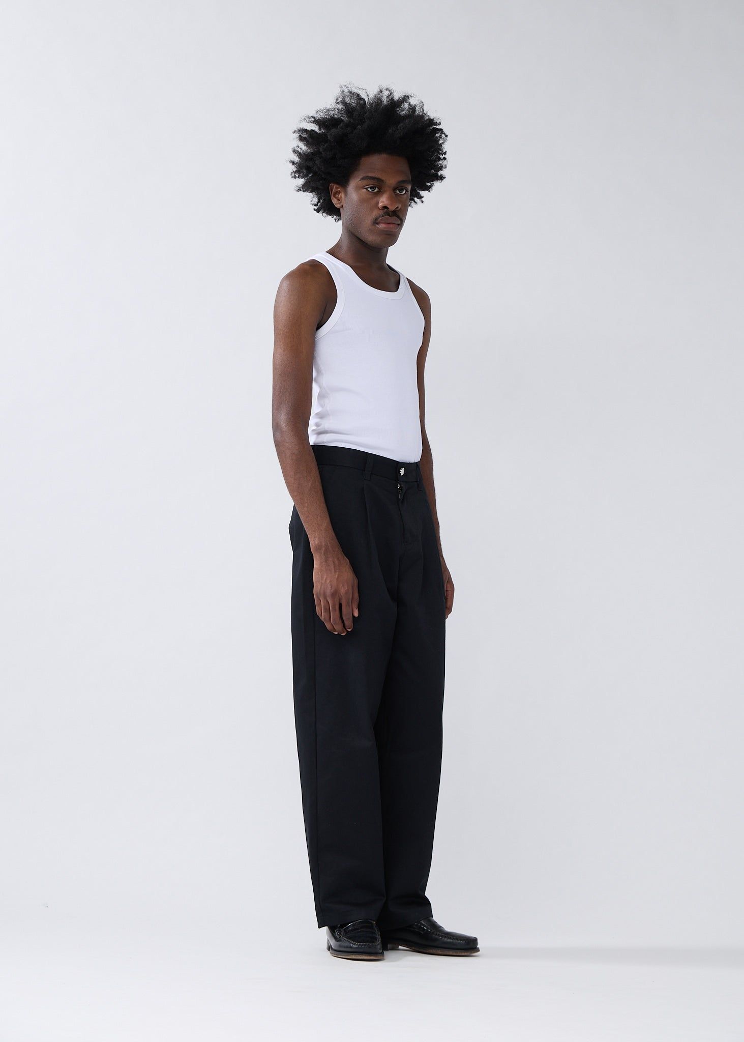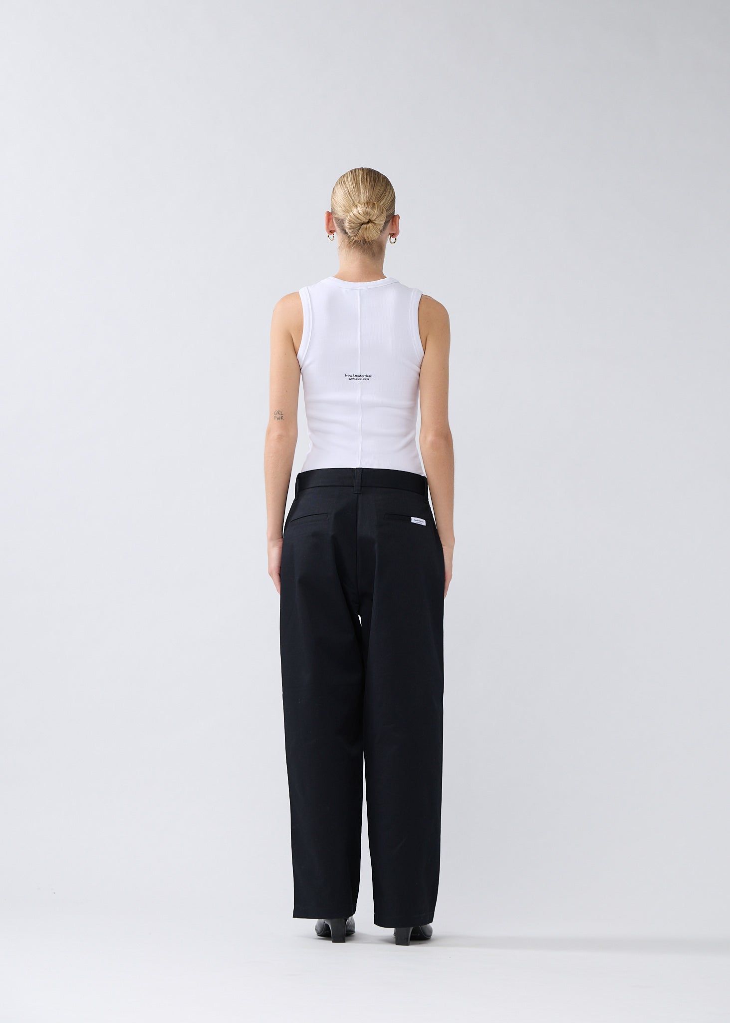 Out of stockWorkwear trouser cut to a relaxed fit with a mid waist and a straight leg, available in two lengths. Detailed with a metal branded button and D-ring, front pleats, New Amsterdam woven label and branded inner waistband. This pant is made out of a cotton polyester twill.