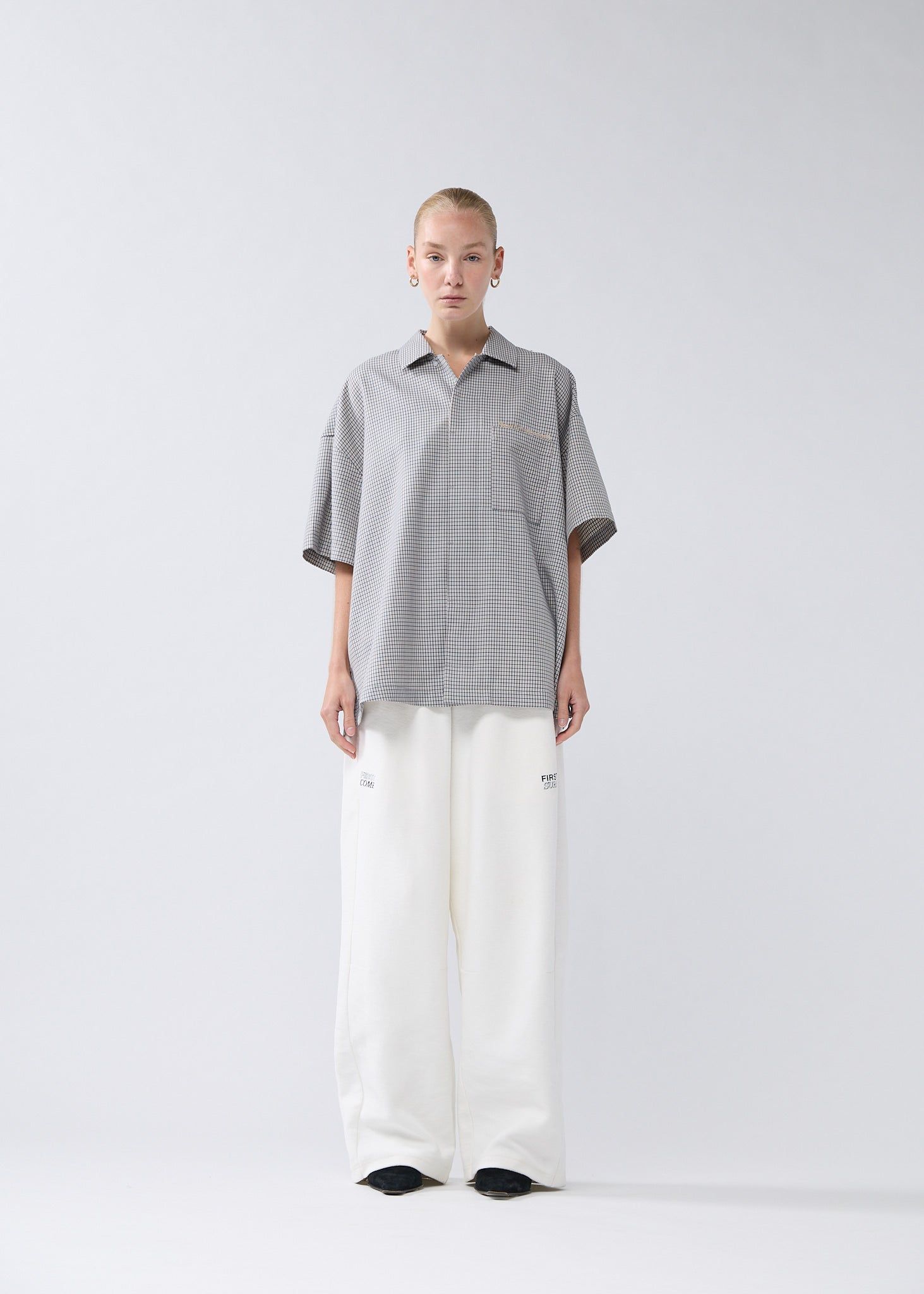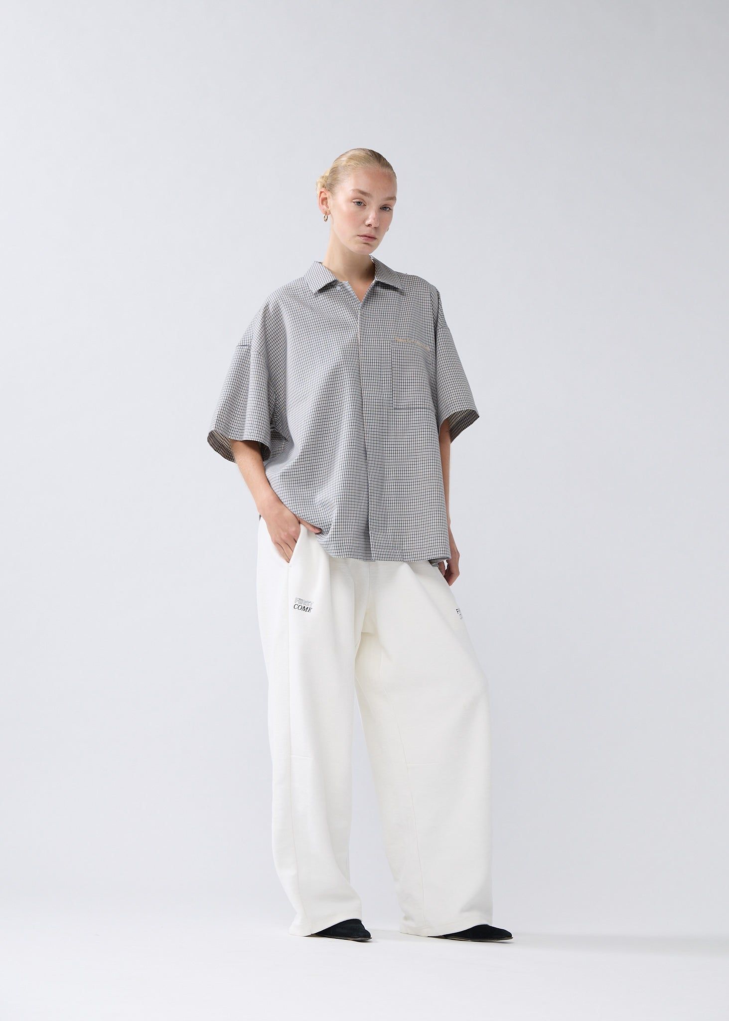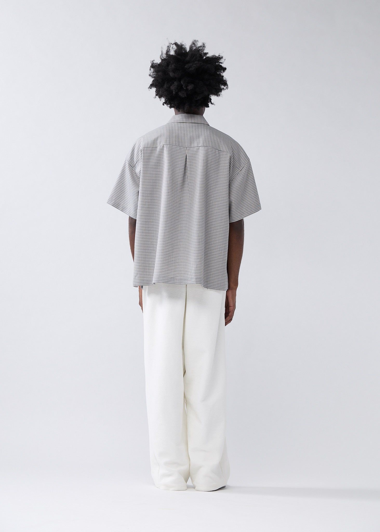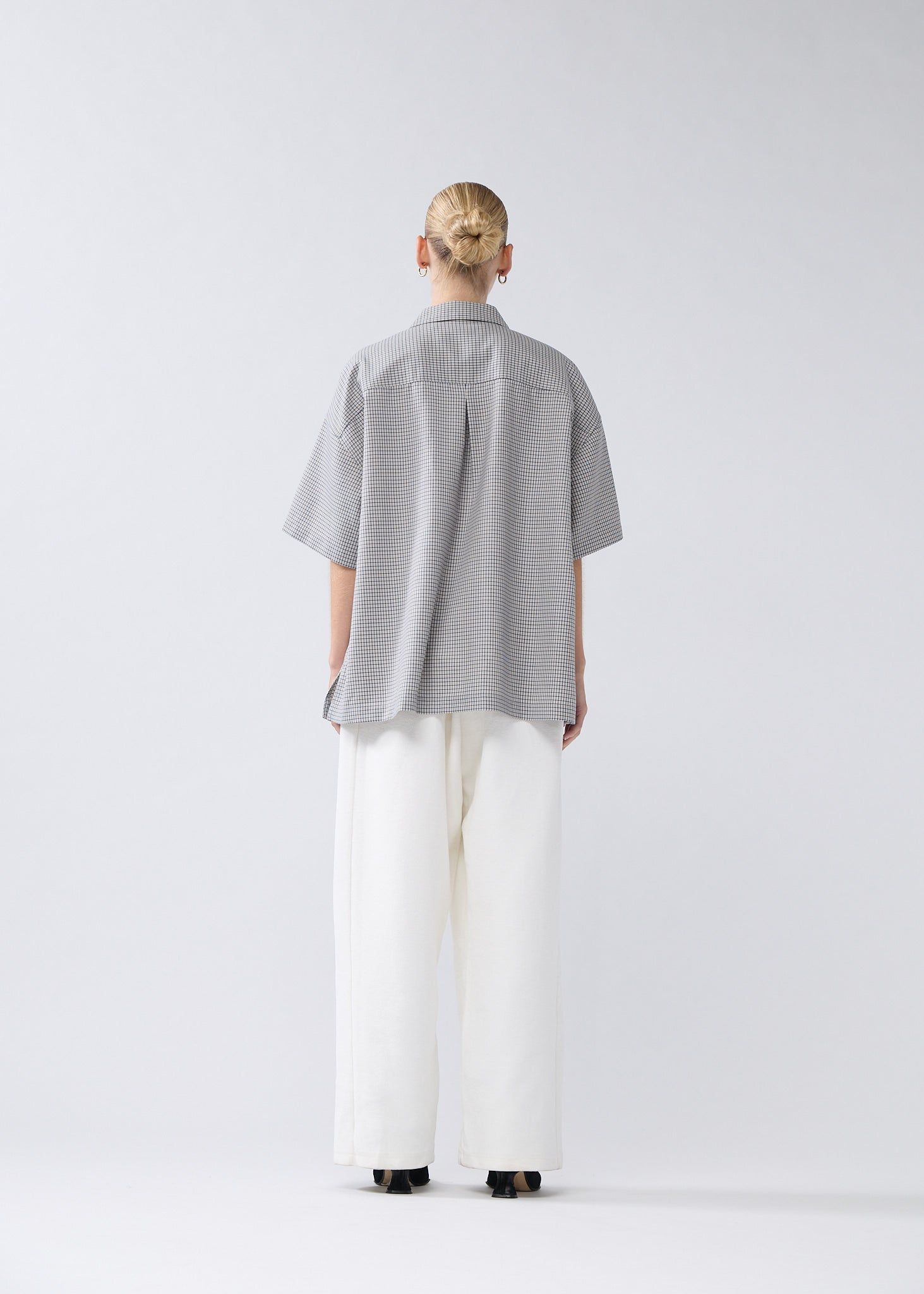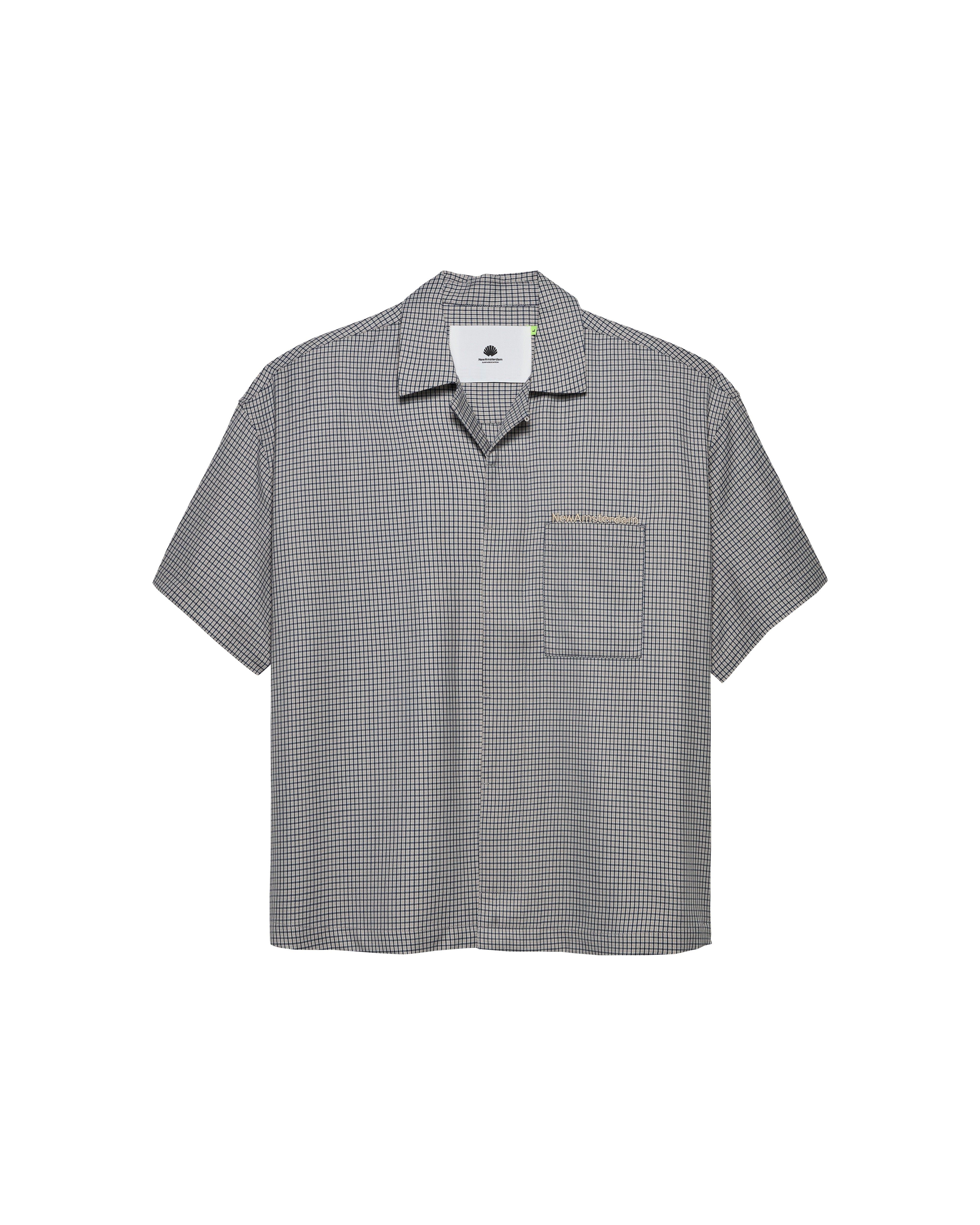 Low stockThis shirt is made from a wool mix fabric with New Amsterdam embroidery on the left chest. The styling of the shirt includes a patch pocket, a hidden button up closure and a pleat detail on the back. The shirt has a relaxed boxy fit with a straight hem.
